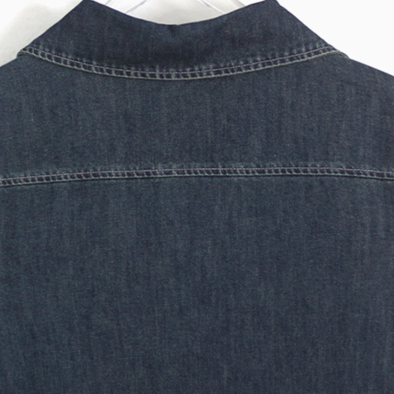 シンプルなデニムシャツにモードなアクセントをプラスした、計算されたデザインです。