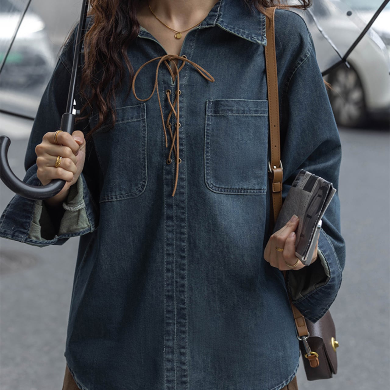 程よいゆるさと上品なシルエットが魅力的なデニムシャツ。