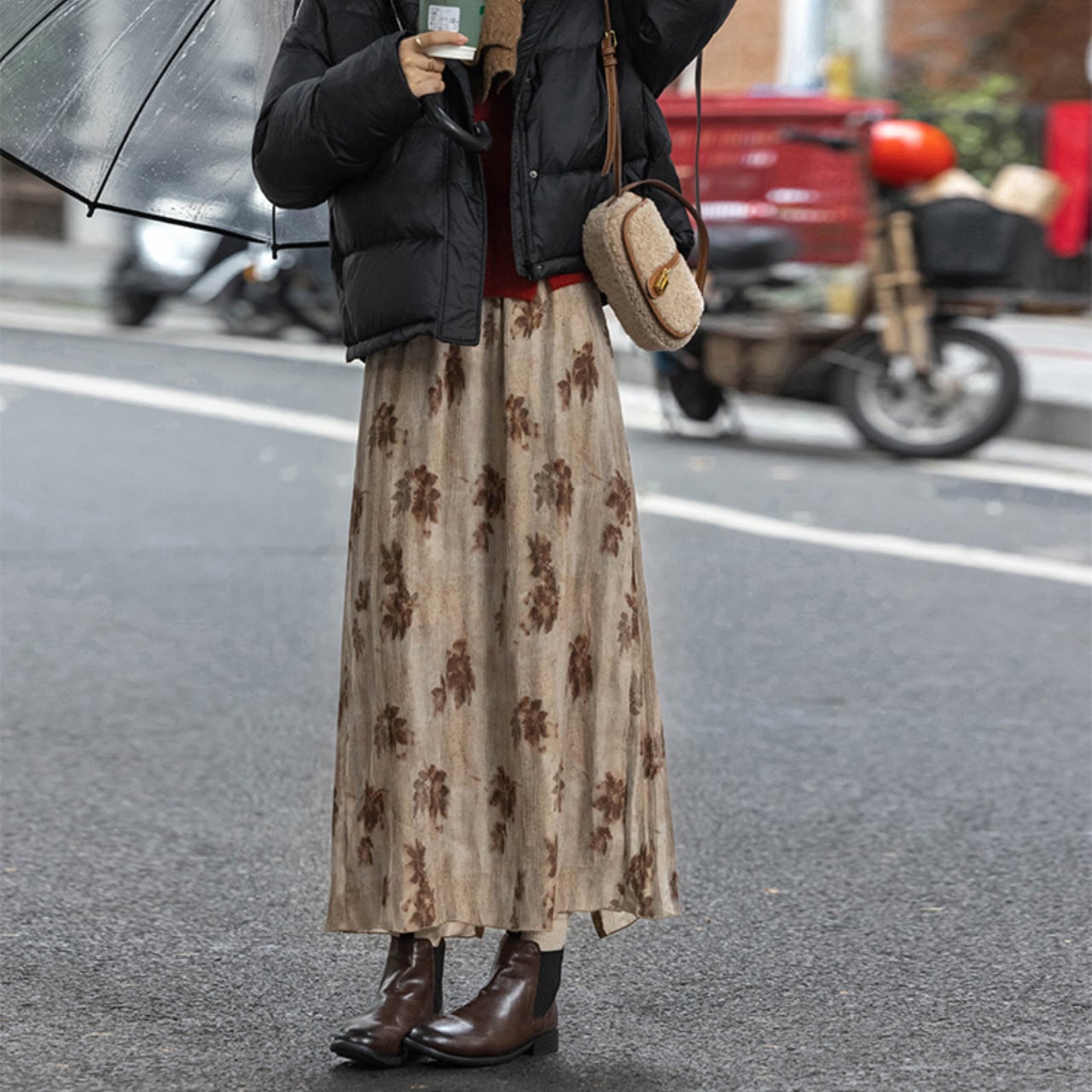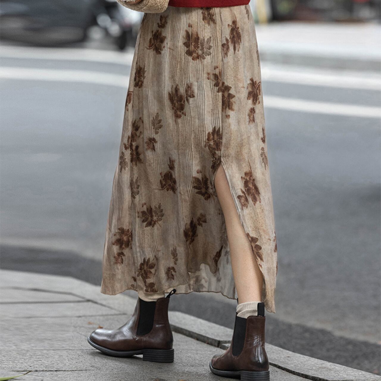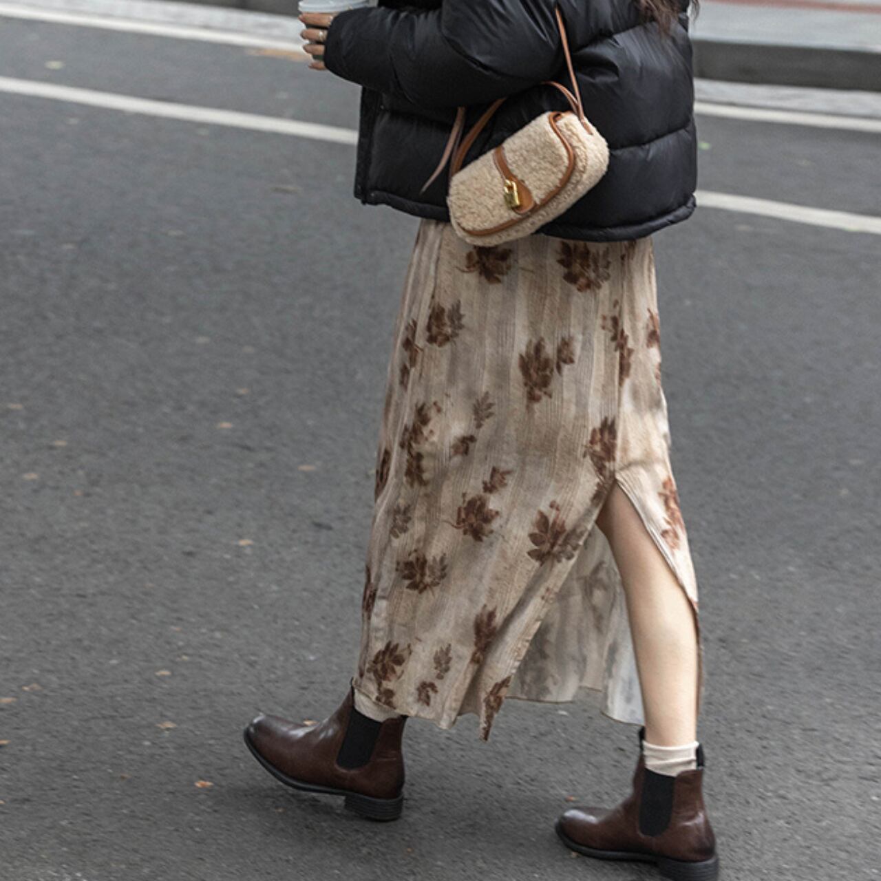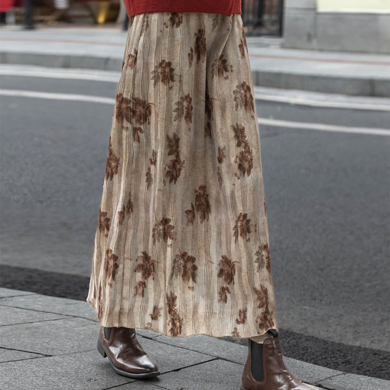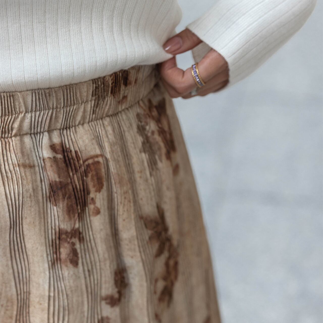 ブラウンの淡い風合いが上品さを演出し、シャツをインしたりカーディガンと合わせたりしてコーディネートを楽しめます◎