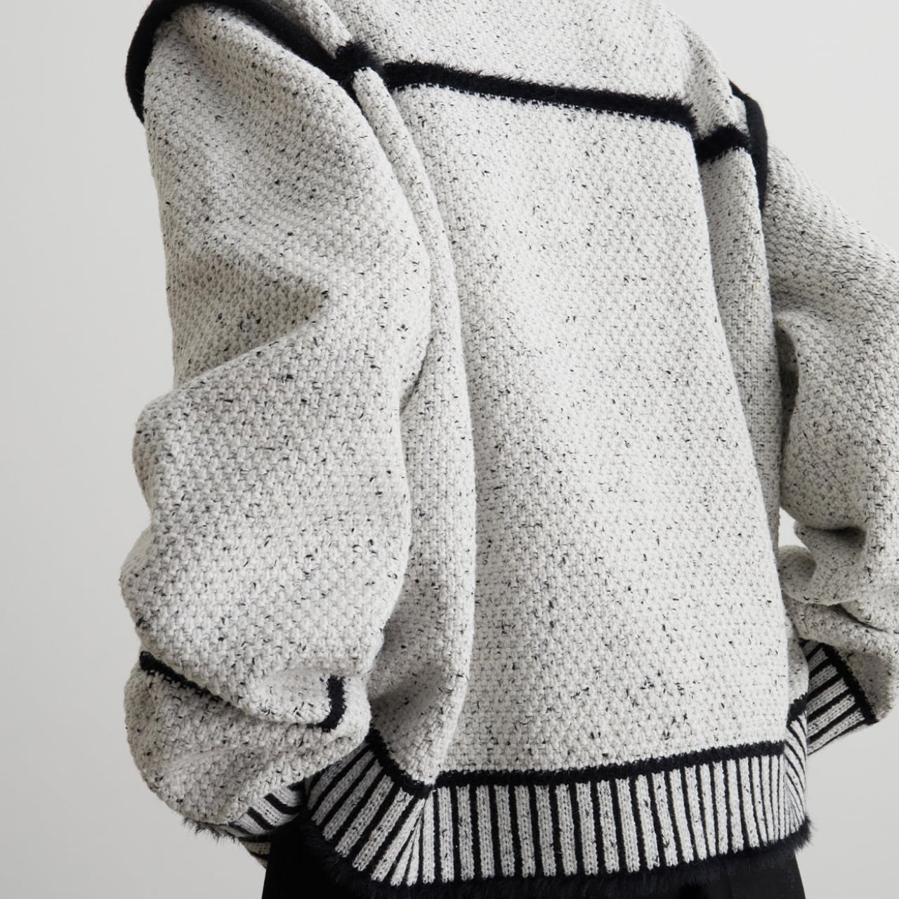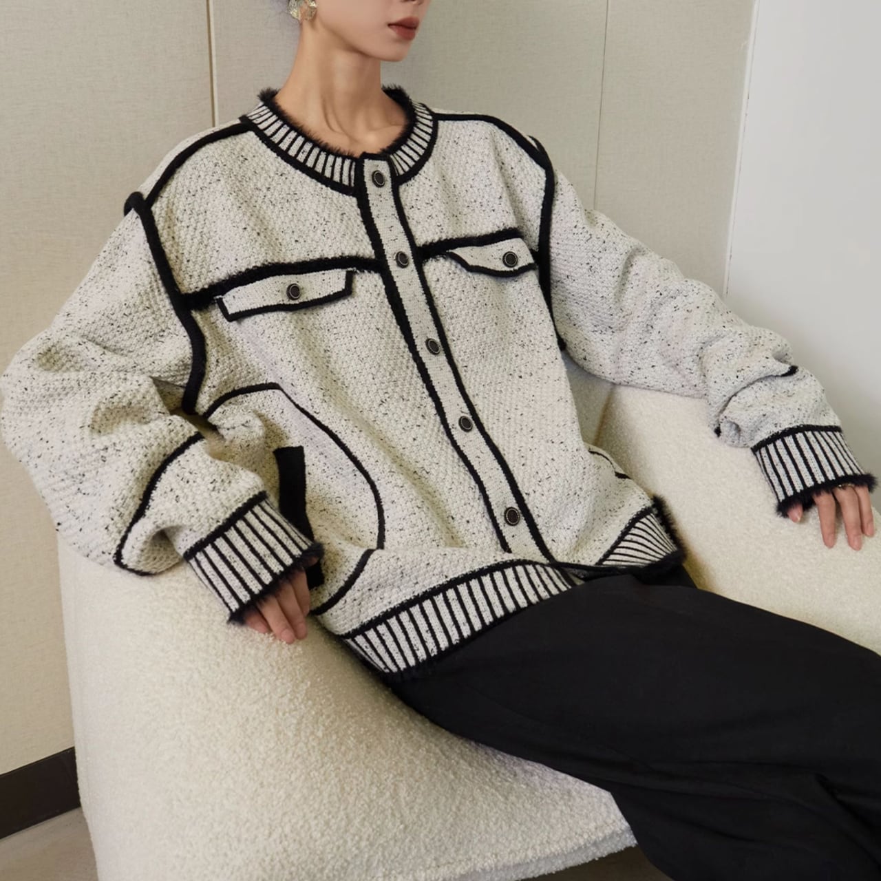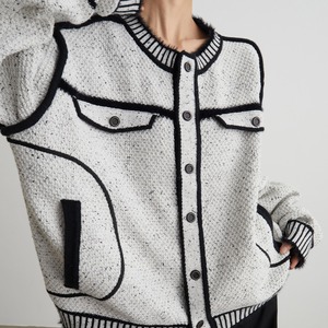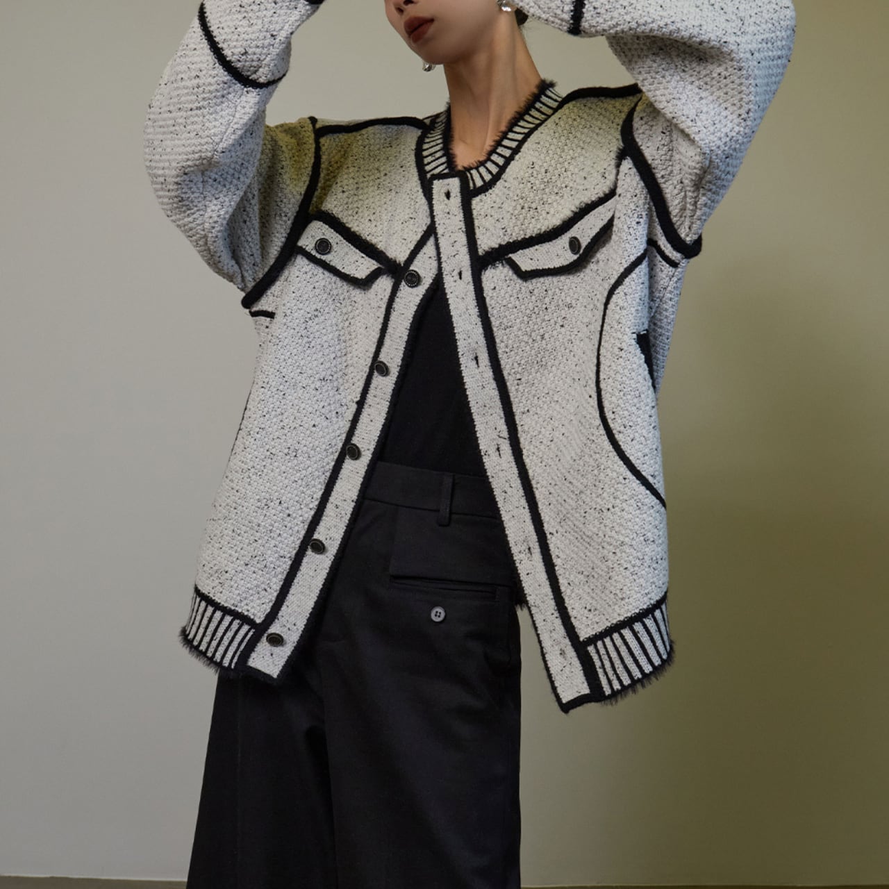 グレーベースに映える黒のパイピングが、シルエットを美しく縁取り、着る人を上品で洗練された印象に導きます。