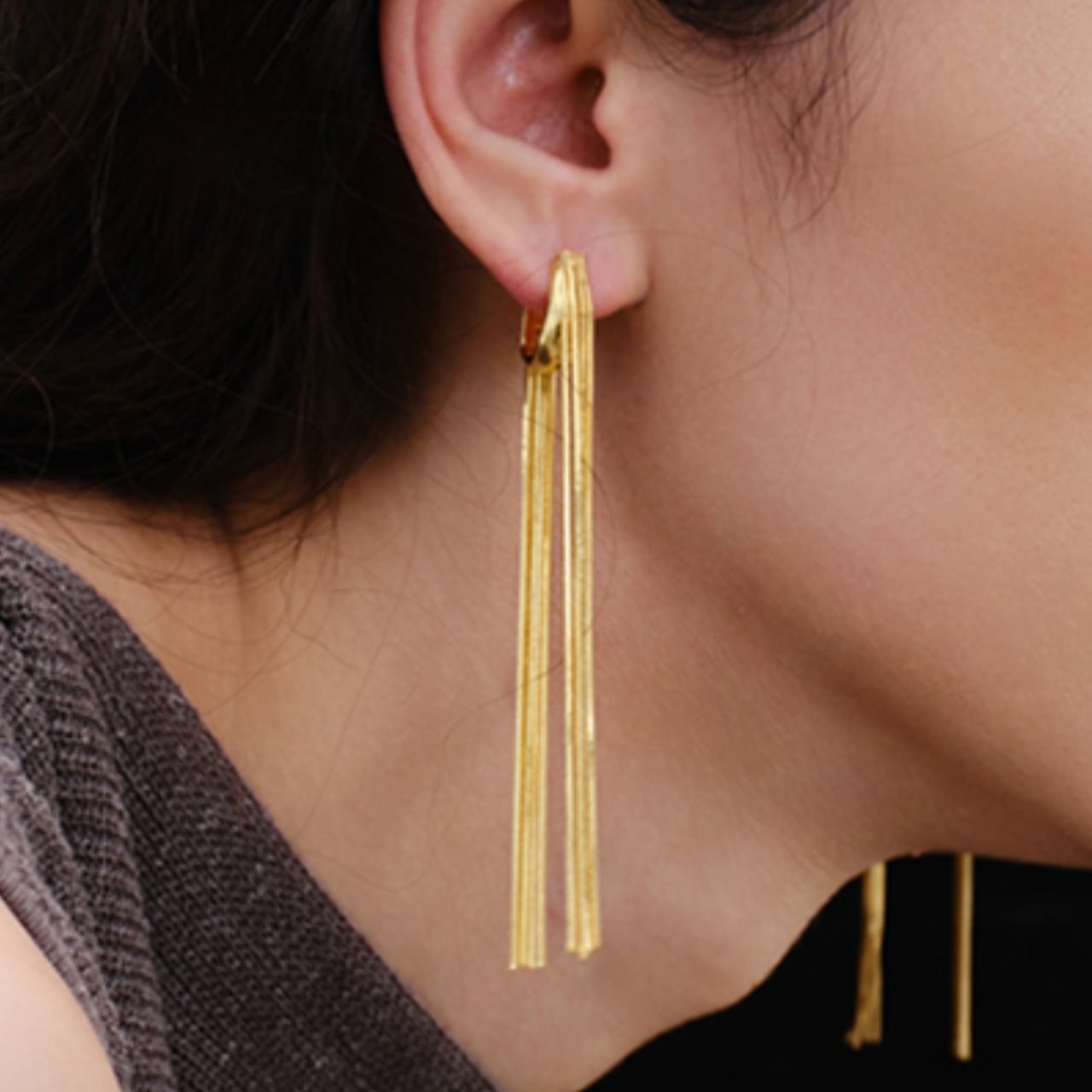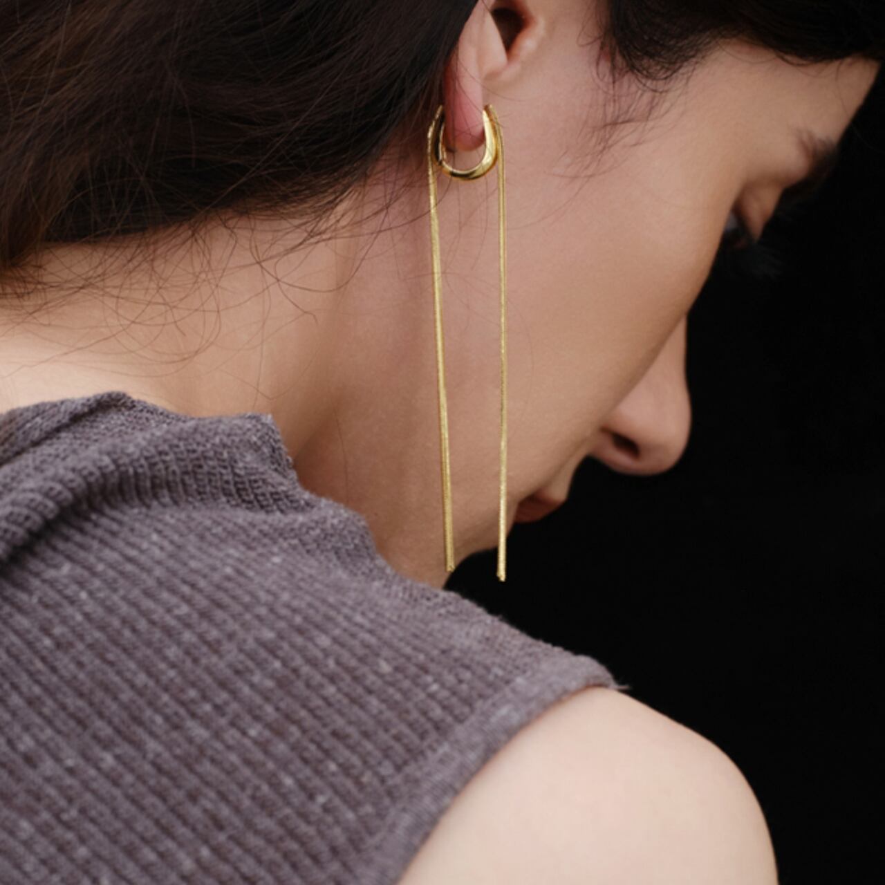 耳元から下へと流れる、しなやかなタッセルライン。