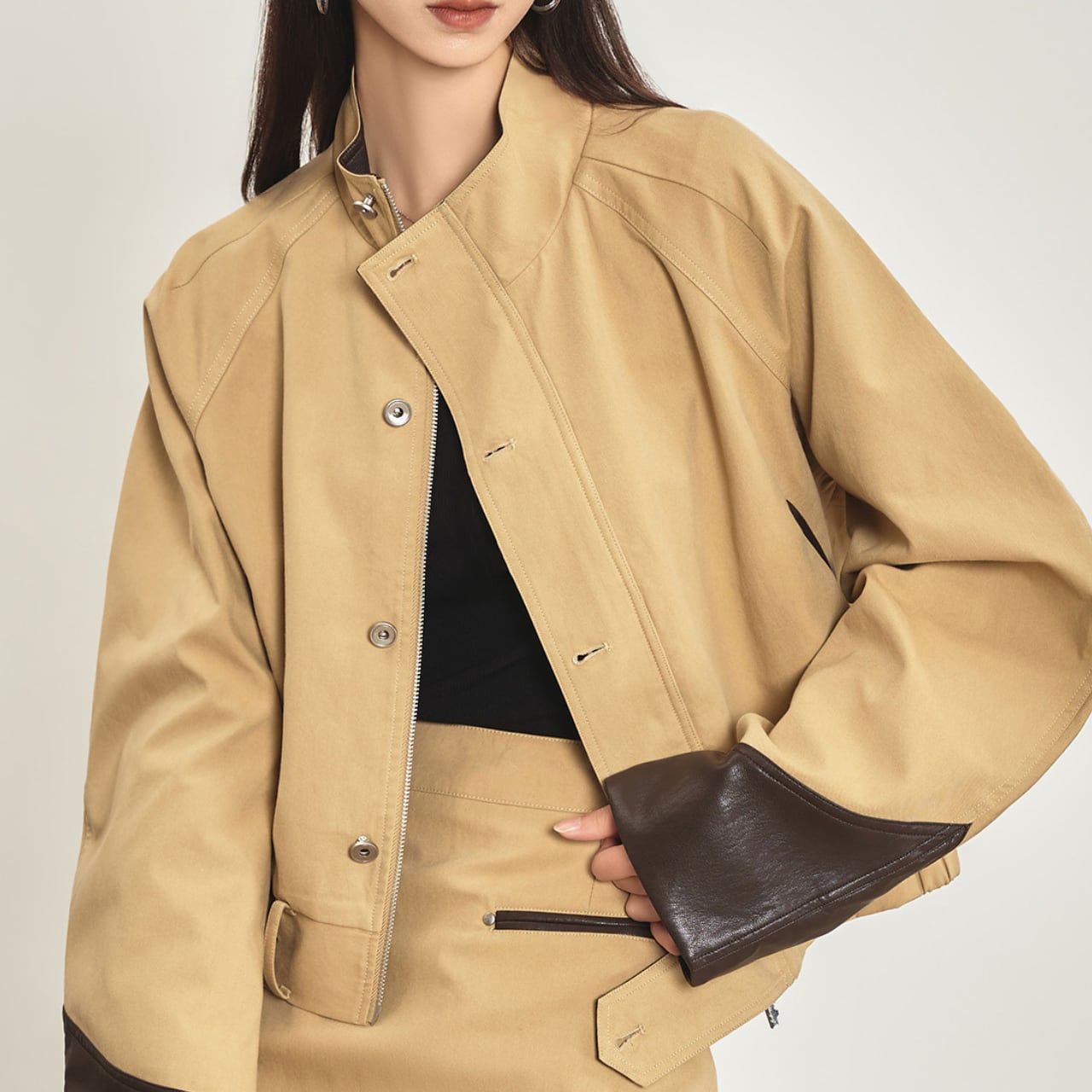 袖のパッチワークデザインが際立つジャケット。 ハイネックデザインで首元をスッキリ見せ、フロントの開閉で印象を変えてコーディネートを楽しむことができます。 ■カラー カーキ ■サイズ S 着丈:62cm 肩幅:30cm 胸囲:94cm 袖丈:41cm M 着丈:63cm 肩幅:31cm 胸囲:98cm 袖丈:42cm L 着丈:64cm 肩幅:32cm 胸囲:102cm 袖丈:43cm XL 着丈:65cm 肩幅:33cm 胸囲:106cm 袖丈:44cm ■モデル 身長:166cm 体重:45kg Sサイズ着用 ■素材 ポリエステル他 ■商品番号 S545 ・・━━・・━━・・━━・・━━・・━━・・━━・・ 【お届けについて】 当ショップの商品は海外より取り寄せ・発送となりますので、ご入金から3~4週間前後で発送いたします。 【お支払い方法について】 ・クレジットカード決済(VISA/Master/JCB/AMERICAN EXPRESS) ・キャリア決済(docomo/au/Softbank/Y!mobile) ・あと払い Pay ID 決済 【注意事項】 ・商品の在庫切れや生産中止、生産遅延が発生した場合は、注文キャンセルとなる可能性がありますので、予めご了承ください。 ・こちらは輸入品となりますので、日本製品とは検品基準が異なります。新品未使用品でもごくわずかな汚れや傷がある場合がございます。 ・イメージ違いやサイズ・カラー相違による返品・交換はお断りします。 ・お手持ちのスマートフォンやパソコンの液晶環境によって、商品のお色味が若干異なる場合があります。 ・発送時期によりデザイン・素材・細部が変更される場合があります。 ご購入前にこちらをお読みください →https://solemy.base.shop/blog/2024/11/20/121101 ・・━━・・━━・・━━・・━━・・━━・・━━・・