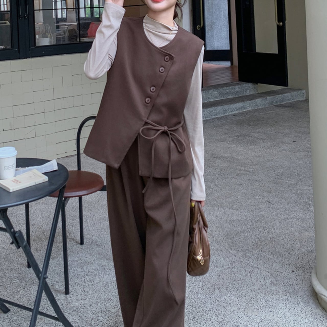 〜セットアップを超えた、スリーピースの品格〜 〜3ピースが紡ぐ、余裕の方程式〜 シャツ、ベスト、パンツ——3つのピースが織りなす、完璧なハーモニー。 セットで着れば即座に完成するスタイリング、別々に着れば無限に広がる着回し力。 スリーピースという、最も賢いワードローブアイテムです。 ベーシックな長袖シャツは、程よくゆとりのあるシルエット。 Vネックのベストが、レイヤードスタイルに奥行きをプラス。 ワイドシルエットのパンツが、リラックス感と都会的なこなれ感を演出。 別々に購入すると難しい色合わせも、セットだからこそ実現できる完璧なバランスです。 ✔️おすすめのスタイリング ・スニーカーを合わせてカジュアルコーデ。 ・セカンドアイテムもカラーを合わせてブラウンコーデを楽しむ。 ・ジャケットを羽織って更なるレイヤードを楽しむ。 ■カラー ブラウン ■サイズ シャツ XS 着丈:46cm 胸囲:94cm S 着丈:47cm 胸囲:98cm M 着丈:48cm 胸囲:102cm L 着丈:49cm 胸囲:106cm XL 着丈:50cm 胸囲:110cm ベスト ワンサイズ 着丈:52cm 肩幅:38cm 胸囲:41cm 袖丈:59cm パンツ XS 着丈:98cm S 着丈:99cm M 着丈:100cm L 着丈:101cm XL 着丈:102cm ■モデル 身長:165cm 体重47kg Mサイズ着用 ■商品番号 S558 ・・━━・・━━・・━━・・━━・・━━・・━━・・ 【お届けについて】 当ショップの商品は海外より取り寄せ・発送となりますので、ご入金から3~4週間前後で発送いたします。 【お支払い方法について】 ・クレジットカード決済(VISA/Master/JCB/AMERICAN EXPRESS) ・キャリア決済(docomo/au/Softbank/Y!mobile) ・あと払い Pay ID 決済 【注意事項】 ・商品の在庫切れや生産中止、生産遅延が発生した場合は、注文キャンセルとなる可能性がありますので、予めご了承ください。 ・こちらは輸入品となりますので、日本製品とは検品基準が異なります。新品未使用品でもごくわずかな汚れや傷がある場合がございます。 ・イメージ違いやサイズ・カラー相違による返品・交換はお断りします。 ・お手持ちのスマートフォンやパソコンの液晶環境によって、商品のお色味が若干異なる場合があります。 ・発送時期によりデザイン・素材・細部が変更される場合があります。 ご購入前にこちらをお読みください →https://solemy.base.shop/blog/2024/11/20/121101 ・・━━・・━━・・━━・・━━・・━━・・━━・・
