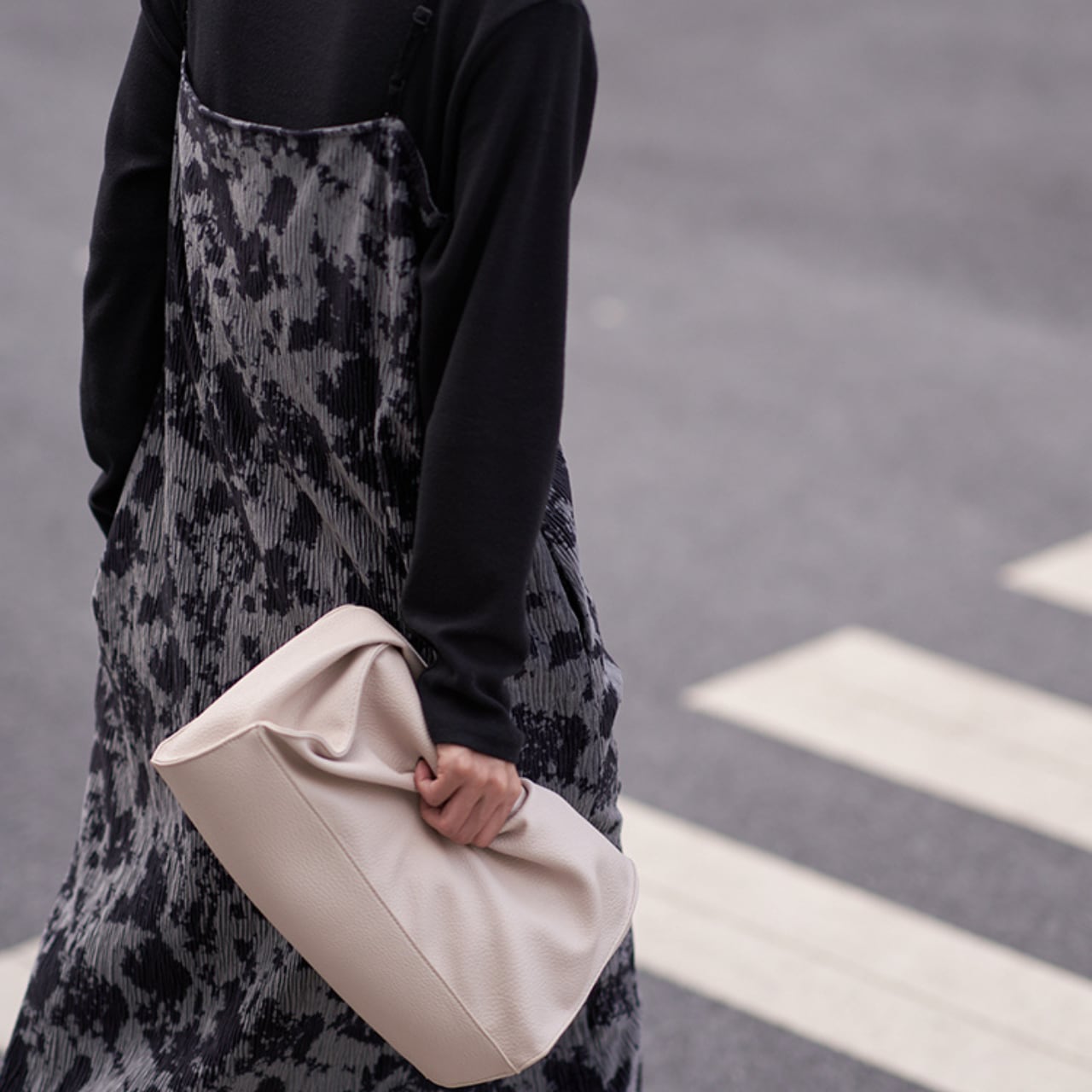 ・クラッチバッグを持ってヒールを履けばエレガントな印象に。
