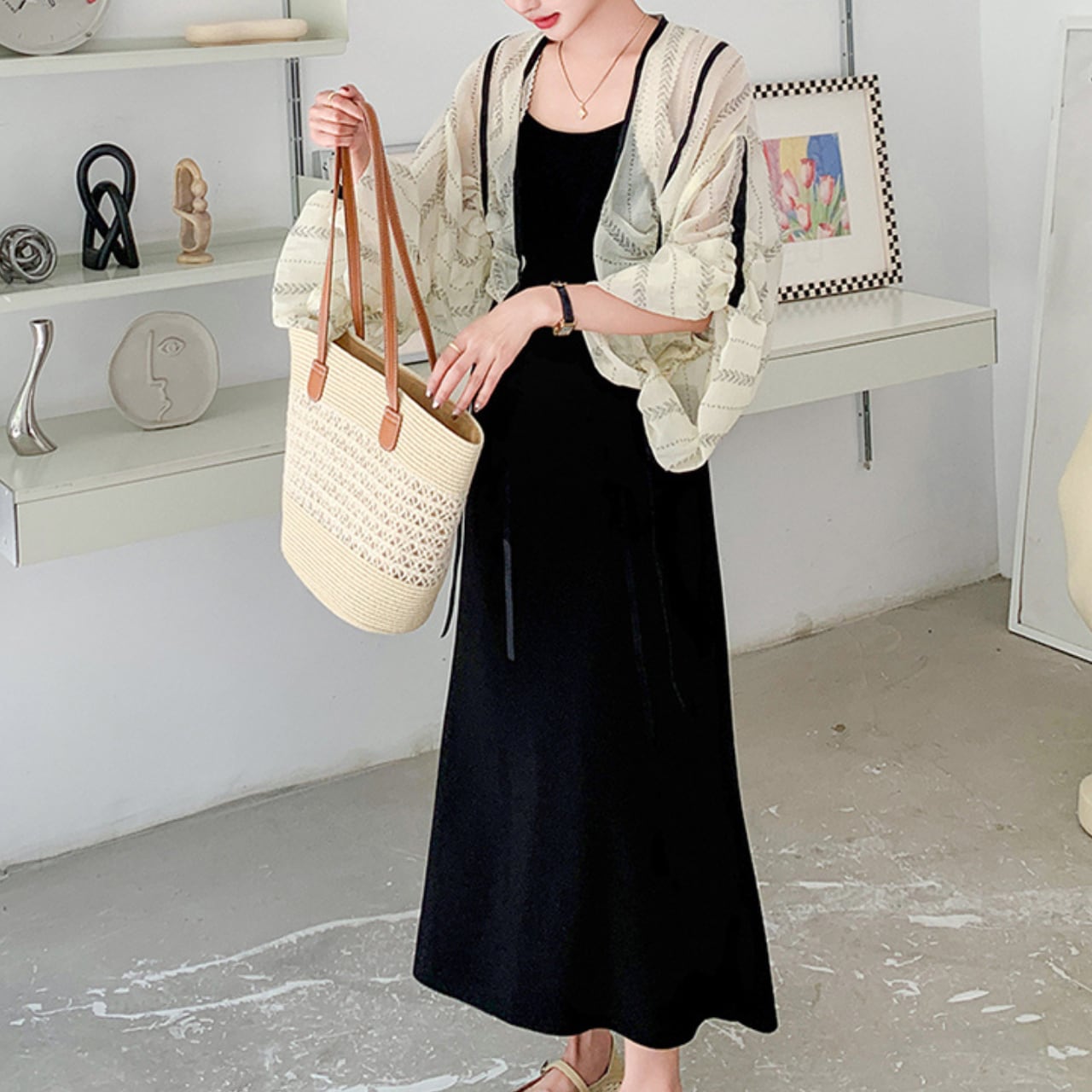 〜シンプルの中に宿る、洗練された美しさ〜 クラシカルなワンピースと軽やかなカーディガンの絶妙な組み合わせ。 一枚でも美しく、重ね着でも様になる計算されたシルエットが魅力です。 ワンピースは、すっきりとしたボディラインを演出し、程よい丈感で上品な印象をキープ。 シンプルなデザインでアクセサリーとの相性も抜群です。 カーディガンは、ふんわりとした袖が女性らしさをプラス。 さらりとした軽い着心地で重ね着しても重たくならず、前開きデザインで温度調節も簡単です! ✔️おすすめのスタイリング ・クラッチバッグにヒールを合わせてエレガントスタイル ・ジャケットを羽織ってフォーマルなシーンでも◎ ・スニーカーを合わせてカジュアルな印象に。 ■カラー ブラック ■サイズ ワンピース XS 着丈:119cm 胸囲:80cm S 着丈:120cm 胸囲:84cm M 着丈:121cm 胸囲:88cm L 着丈:122cm 胸囲:92cm XL 着丈:123cm 胸囲:96cm カーディガン XS 着丈:48cm 胸囲:94cm S 着丈:49cm 胸囲:98cm M 着丈:50cm 胸囲:102cm L 着丈:51cm 胸囲:106cm XL 着丈:52cm 胸囲:110cm ■モデル 身長:165cm 体重:46kg Mサイズ着用 ■商品番号 S584 ・・━━・・━━・・━━・・━━・・━━・・━━・・ 【お届けについて】 当ショップの商品は海外より取り寄せ・発送となりますので、ご入金から3~4週間前後で発送いたします。 【お支払い方法について】 ・クレジットカード決済(VISA/Master/JCB/AMERICAN EXPRESS) ・キャリア決済(docomo/au/Softbank/Y!mobile) ・あと払い Pay ID 決済 【注意事項】 ・商品の在庫切れや生産中止、生産遅延が発生した場合は、注文キャンセルとなる可能性がありますので、予めご了承ください。 ・こちらは輸入品となりますので、日本製品とは検品基準が異なります。新品未使用品でもごくわずかな汚れや傷がある場合がございます。 ・イメージ違いやサイズ・カラー相違による返品・交換はお断りします。 ・お手持ちのスマートフォンやパソコンの液晶環境によって、商品のお色味が若干異なる場合があります。 ・発送時期によりデザイン・素材・細部が変更される場合があります。 ご購入前にこちらをお読みください →https://solemy.base.shop/blog/2024/11/20/121101 ・・━━・・━━・・━━・・━━・・━━・・━━・・
