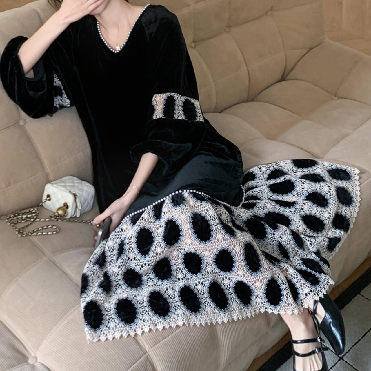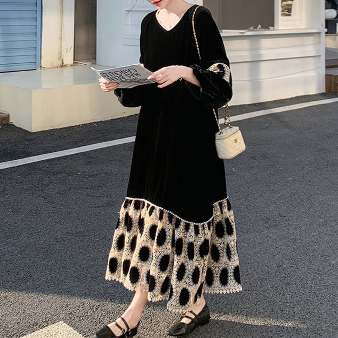 〜大人のドットスタイル〜 クラシックなドット柄と切り替えデザインが目を引くワンピース。 上品さと可憐さを絶妙にミックスした、大人のためのコンビネーションスタイルです。 ベルベットのブラックベースに、裾や袖のドットがアクセントを加え、優雅な印象を与えます。 上品なシルエットが身体を美しく引き立て、1枚でも特別感のある仕上がりです。 ✔️おすすめのスタイリング ・カラーを統一してモノトーンコーデを楽しむ。 ・ジャケットを羽織ってカジュアルダウンコーデ。 ・ブーツやヒールと合わせて、季節感を演出したコーディネート。 ■カラー ブラック ■サイズ XS 着丈:116cm 肩幅:37cm 胸囲:90cm 袖丈:57cm S 着丈:117cm 肩幅:38cm 胸囲:94cm 袖丈:58cm M 着丈:118cm 肩幅:39cm 胸囲:98cm 袖丈:59cm L 着丈:119cm 肩幅:40cm 胸囲:102cm 袖丈:60cm XL 着丈:120cm 肩幅:41cm 胸囲:106cm 袖丈:61cm ■モデル 身長:165cm 体重:46kg Mサイズ着用 ■商品番号 S591 ・・━━・・━━・・━━・・━━・・━━・・━━・・ 【お届けについて】 当ショップの商品は海外より取り寄せ・発送となりますので、ご入金から3~4週間前後で発送いたします。 【お支払い方法について】 ・クレジットカード決済(VISA/Master/JCB/AMERICAN EXPRESS) ・キャリア決済(docomo/au/Softbank/Y!mobile) ・あと払い Pay ID 決済 【注意事項】 ・商品の在庫切れや生産中止、生産遅延が発生した場合は、注文キャンセルとなる可能性がありますので、予めご了承ください。 ・こちらは輸入品となりますので、日本製品とは検品基準が異なります。新品未使用品でもごくわずかな汚れや傷がある場合がございます。 ・イメージ違いやサイズ・カラー相違による返品・交換はお断りします。 ・お手持ちのスマートフォンやパソコンの液晶環境によって、商品のお色味が若干異なる場合があります。 ・発送時期によりデザイン・素材・細部が変更される場合があります。 ご購入前にこちらをお読みください →https://solemy.base.shop/blog/2024/11/20/121101 ・・━━・・━━・・━━・・━━・・━━・・━━・・