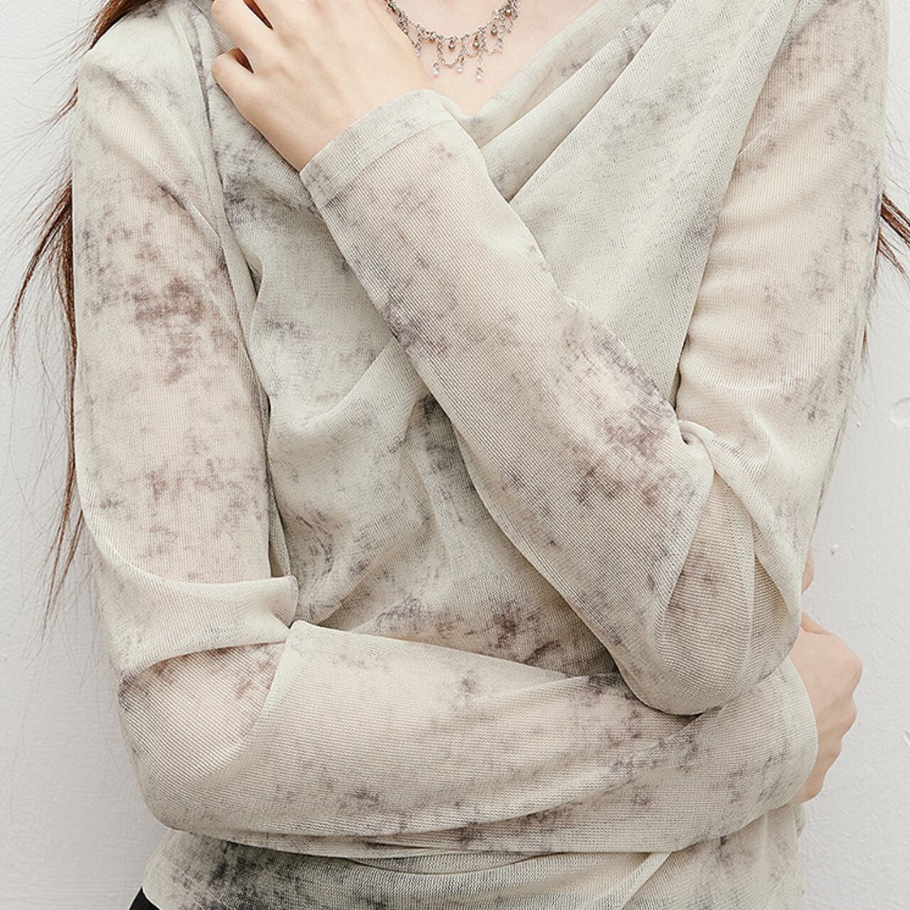 程よいシアー感が軽やかで、重ね着しても野暮ったくならない透明感をプラス。
