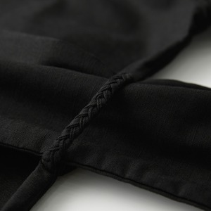 シンプルなシルエットながら、ウエストでリボンを結ぶデザインが華やかさを演出します。