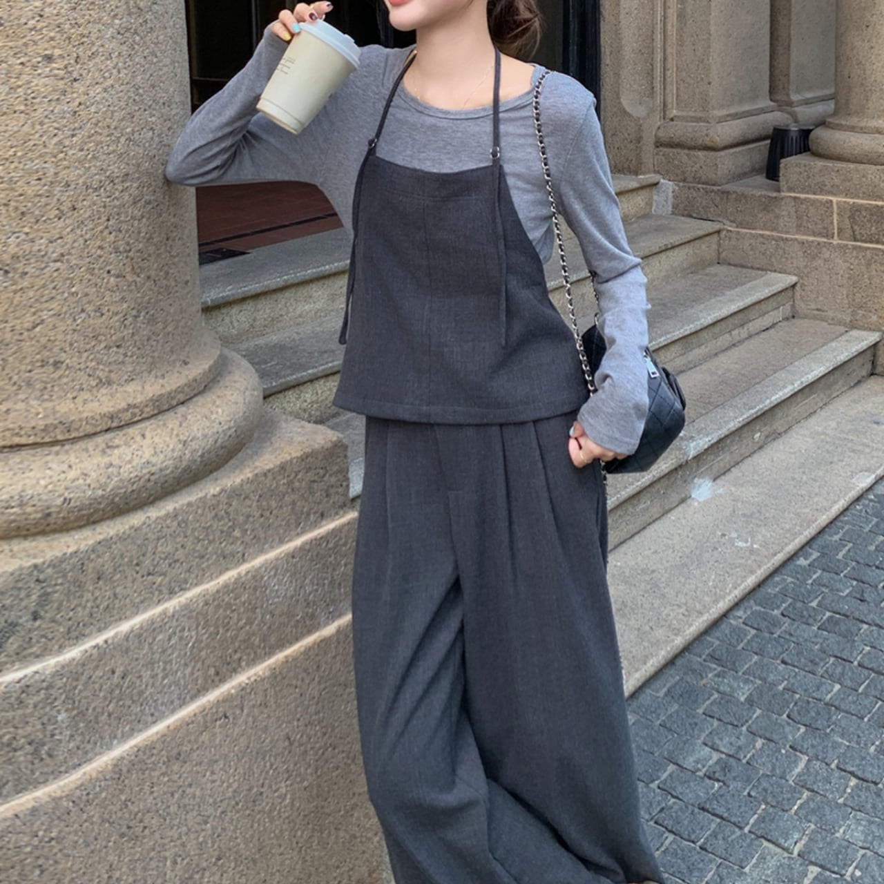〜レイヤードの交響曲〜 長袖シャツ、シンプルなキャミソール、ゆったりとしたワイドパンツ。 3つのアイテムが織りなす、計算されたレイヤードスタイル。 別々でも、重ねても、どんな組み合わせでも美しく決まる、究極のセットアップです。 色味とデザインが絶妙に調和し、どう組み合わせても洗練された印象に。 一式揃えるだけで、最低6通り以上のスタイリングバリエーションが生まれる、賢いワードローブチョイスです。 ✔️おすすめのスタイリング ・スニーカーを合わせてカジュアルコーデ。 ・ジャケットを羽織ってシックに決める。 ・インナーをチェンジしてレイヤードを楽しむ。 ■カラー グレー ■サイズ XS キャミソールウエスト:71cm パンツ丈:97cm パンツウエスト:64cm S キャミソールウエスト:75cm パンツ丈:98cm パンツウエスト:68cm M キャミソールウエスト:79cm パンツ丈:99cm パンツウエスト:72cm L キャミソールウエスト:83cm パンツ丈:100cm パンツウエスト:76cm XL キャミソールウエスト:87cm パンツ丈:101cm パンツウエスト:80cm ■モデル 身長:166cm 体重:45kg Mサイズ着用 ■商品番号 S622 ・・━━・・━━・・━━・・━━・・━━・・━━・・ 【お届けについて】 当ショップの商品は海外より取り寄せ・発送となりますので、ご入金から3~4週間前後で発送いたします。 【お支払い方法について】 ・クレジットカード決済(VISA/Master/JCB/AMERICAN EXPRESS) ・キャリア決済(docomo/au/Softbank/Y!mobile) ・あと払い Pay ID 決済 【注意事項】 ・商品の在庫切れや生産中止、生産遅延が発生した場合は、注文キャンセルとなる可能性がありますので、予めご了承ください。 ・こちらは輸入品となりますので、日本製品とは検品基準が異なります。新品未使用品でもごくわずかな汚れや傷がある場合がございます。 ・イメージ違いやサイズ・カラー相違による返品・交換はお断りします。 ・お手持ちのスマートフォンやパソコンの液晶環境によって、商品のお色味が若干異なる場合があります。 ・発送時期によりデザイン・素材・細部が変更される場合があります。 ご購入前にこちらをお読みください →https://solemy.base.shop/blog/2024/11/20/121101 ・・━━・・━━・・━━・・━━・・━━・・━━・・