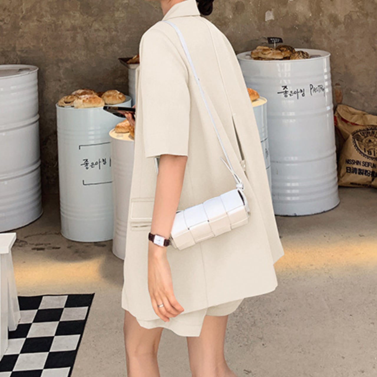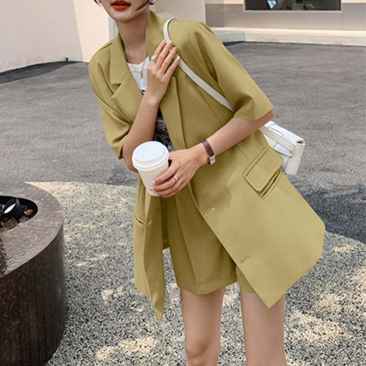 半袖ジャケット&半袖パンツのセットアイテム。 ジャケットはインナーの合わせ方次第で、カジュアルな雰囲気にもしっかりめのコーデにも着用いただけます。 アシンメトリーのフラップポケットが施されており遊び心のあるデザインです。 パンツはプリーツ加工がされており、ハイウエストでスタイルアップも◎ ■カラー ・イエロー ・グレー ・ホワイト ■サイズ ジャケット S 着丈:71cm 胸囲:100cm 肩幅:45cm 袖丈:27cm M 着丈:72cm 胸囲:104cm 肩幅:46cm 袖丈:28cm L 着丈:73cm 胸囲:108cm 肩幅:47cm 袖丈:29cm XL 着丈:74cm 胸囲:112cm 肩幅:48cm 袖丈:30cm パンツ S 着丈:35cm ウエスト:68cm M 着丈:36cm ウエスト:72cm L 着丈:37cm ウエスト:76cm XL 着丈:38cm ウエスト:80cm 採寸方法により1~3cmの誤差がある場合がございます。 ■モデル 身長:165cm 体重:47kg Mサイズ着用 ■商品番号 S657 ・・━━・・━━・・━━・・━━・・━━・・━━・・ 【お届けについて】 当ショップの商品は海外より取り寄せ・発送となりますので、ご入金から3~4週間前後で発送いたします。 【お支払い方法について】 ・クレジットカード決済(VISA/Master/JCB/AMERICAN EXPRESS) ・キャリア決済(docomo/au/Softbank/Y!mobile) ・あと払い Pay ID 決済 【注意事項】 ・商品の在庫切れや生産中止、生産遅延が発生した場合は、注文キャンセルとなる可能性がありますので、予めご了承ください。 ・こちらは輸入品となりますので、日本製品とは検品基準が異なります。新品未使用品でもごくわずかな汚れや傷がある場合がございます。 ・イメージ違いやサイズ・カラー相違による返品・交換はお断りします。 ・お手持ちのスマートフォンやパソコンの液晶環境によって、商品のお色味が若干異なる場合があります。 ・発送時期によりデザイン・素材・細部が変更される場合があります。 ご購入前にこちらをお読みください →https://solemy.base.shop/blog/2024/11/20/121101 ・・━━・・━━・・━━・・━━・・━━・・━━・・