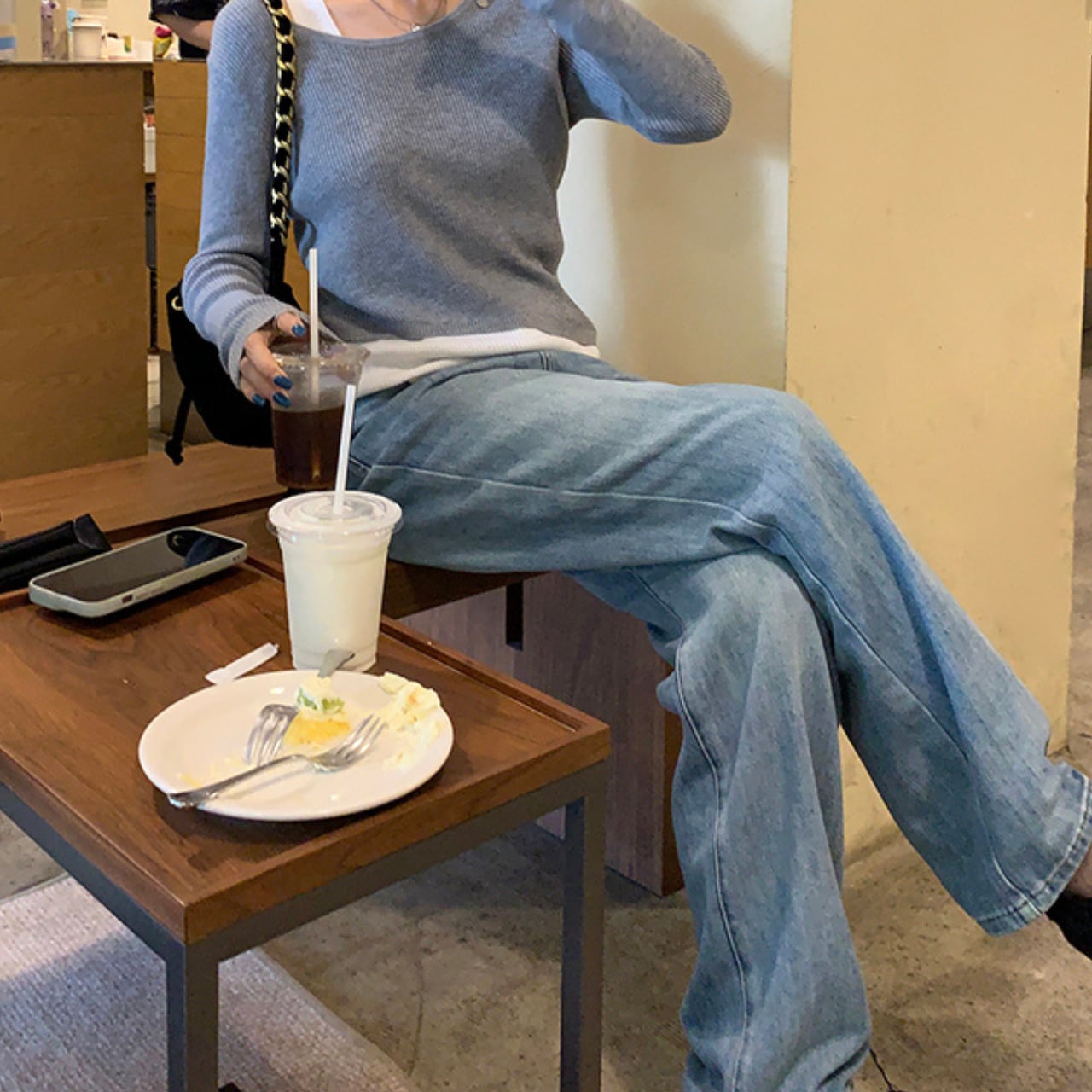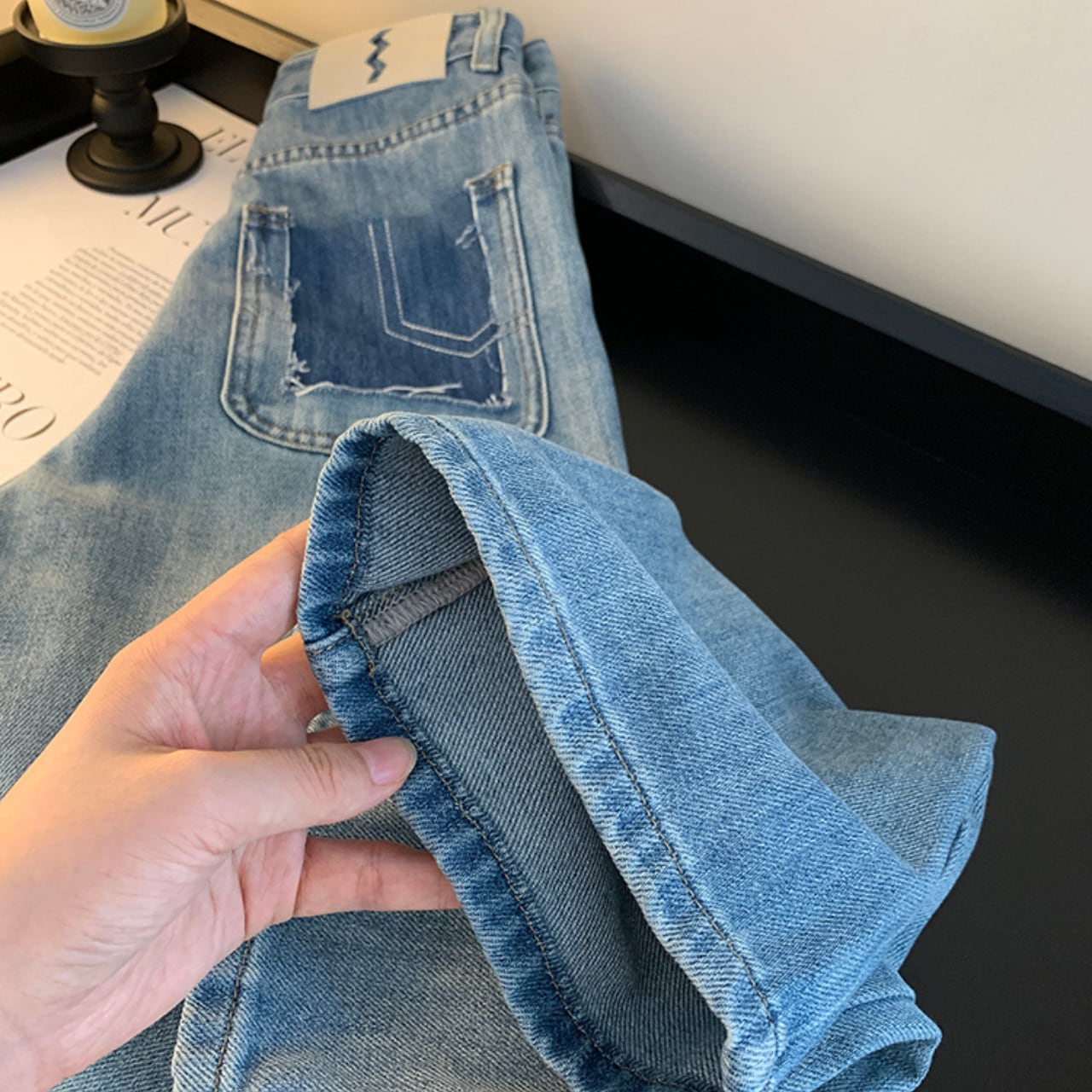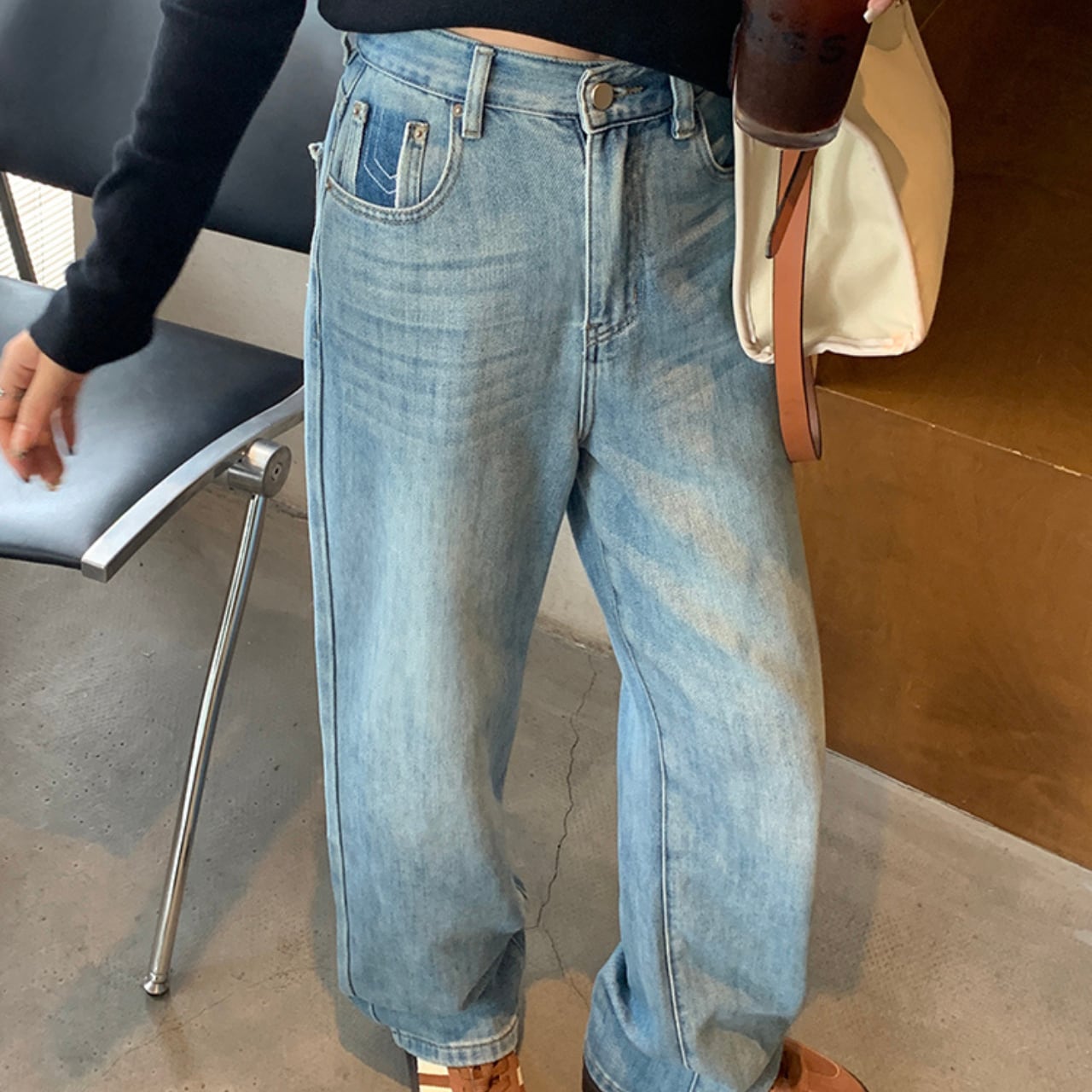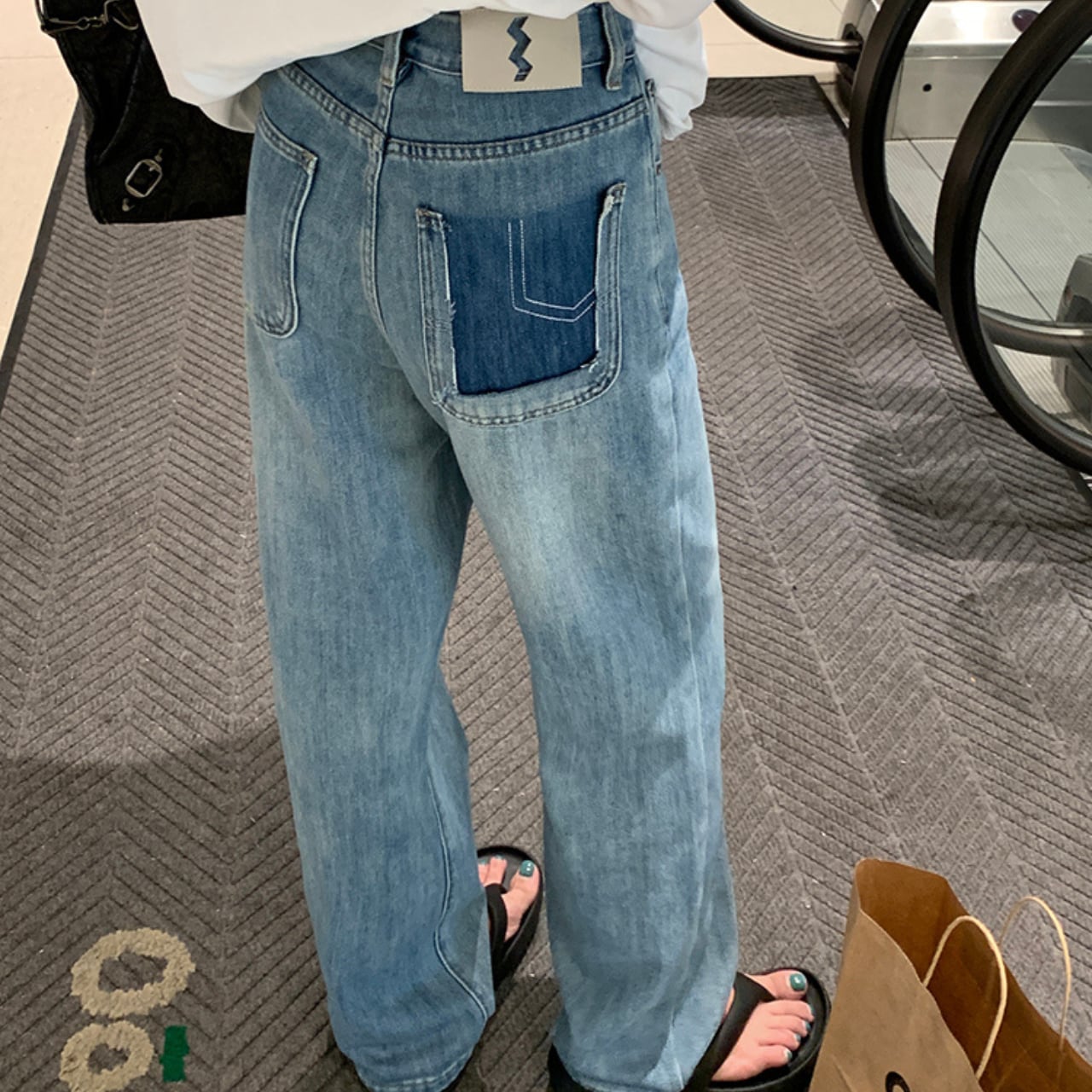 定番のストレートジーンズに、大きなパッチポケットという遊び心をプラス。
