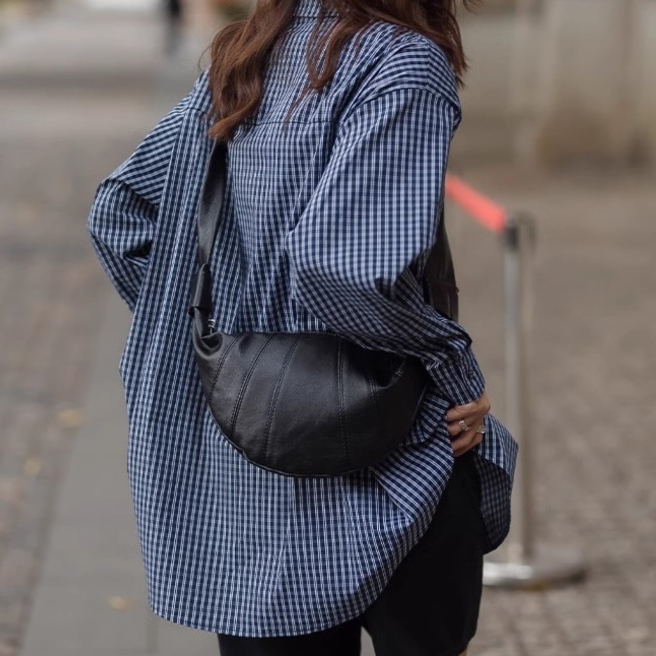 チェック柄の長袖シャツ。