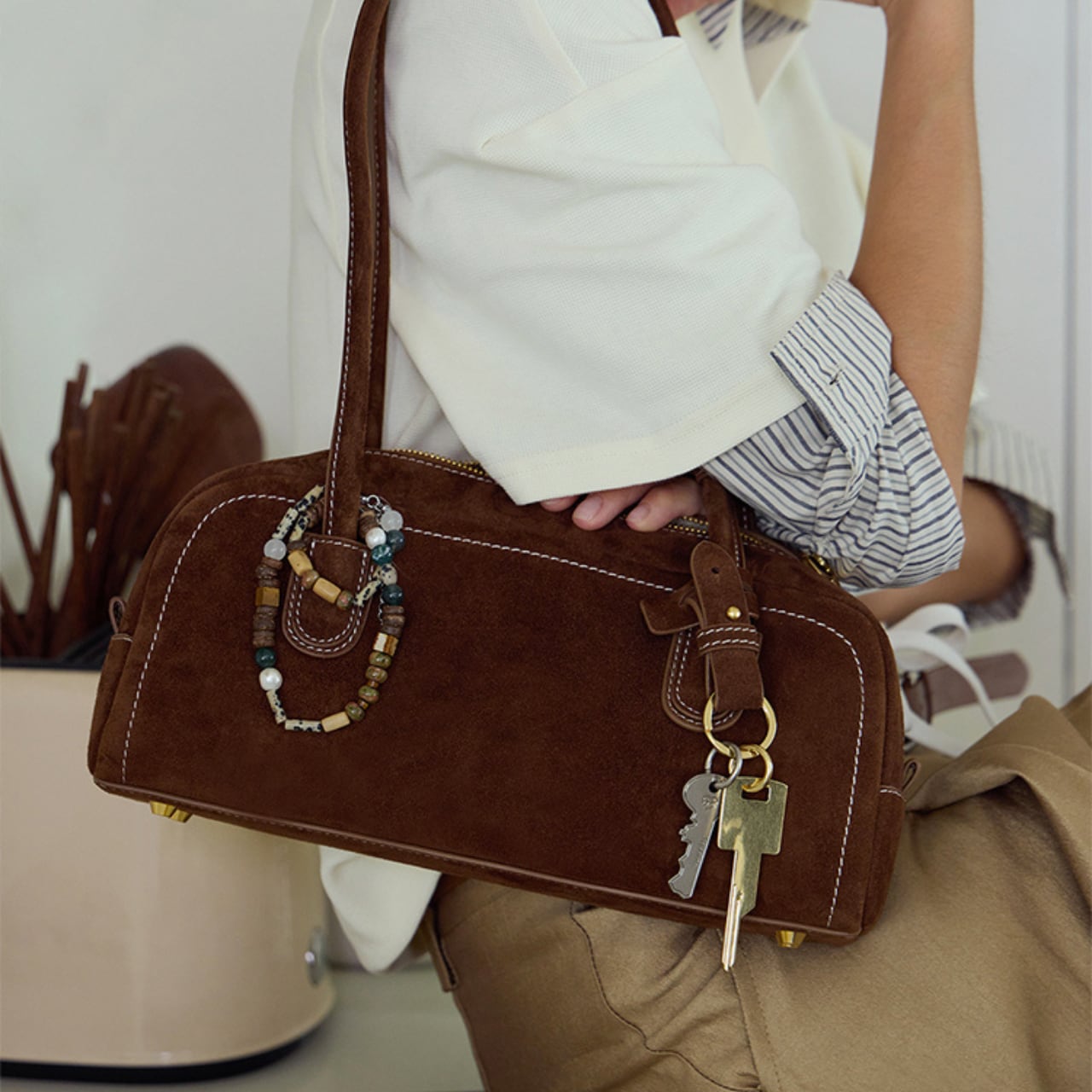 Suede long shoulder bag in 2 colors S673