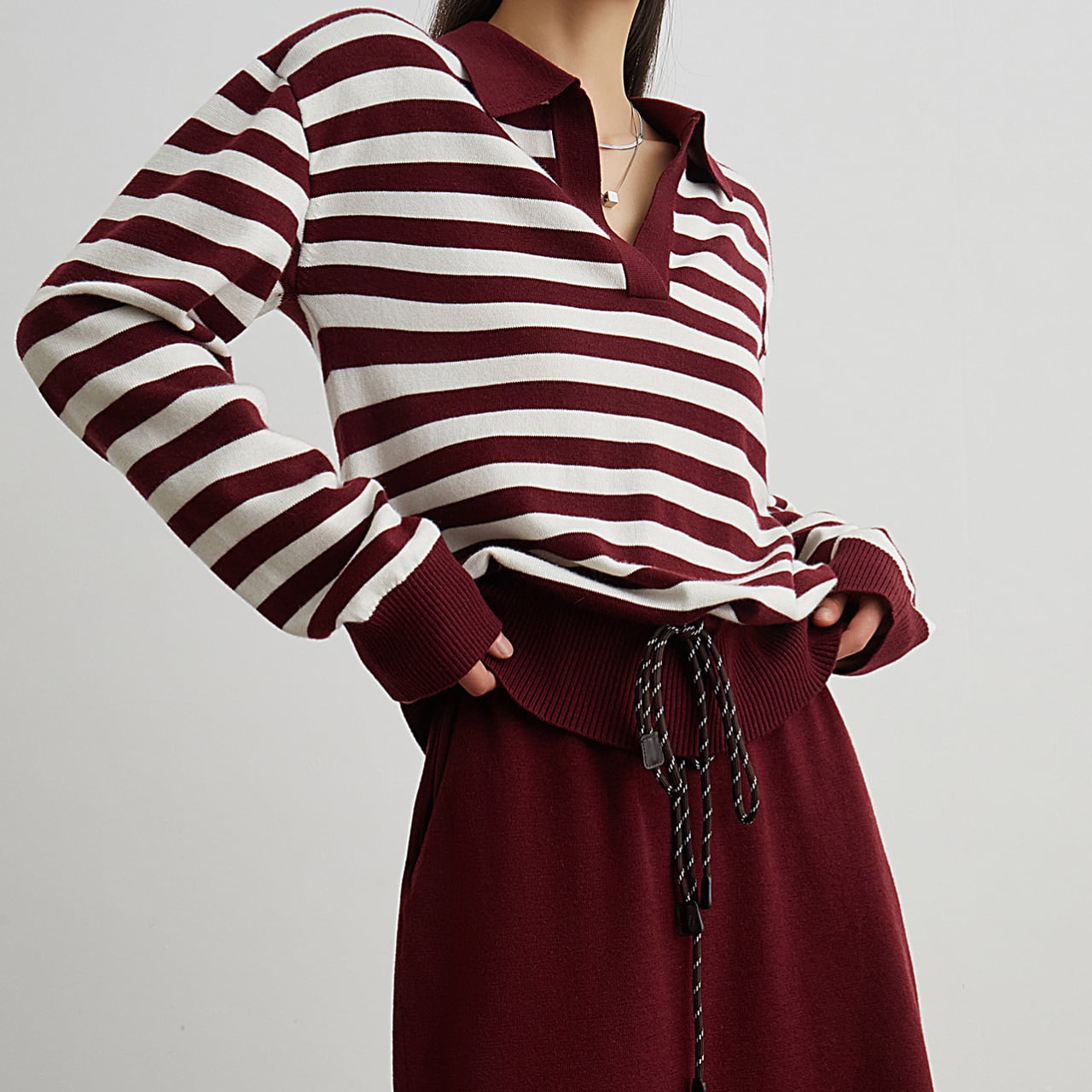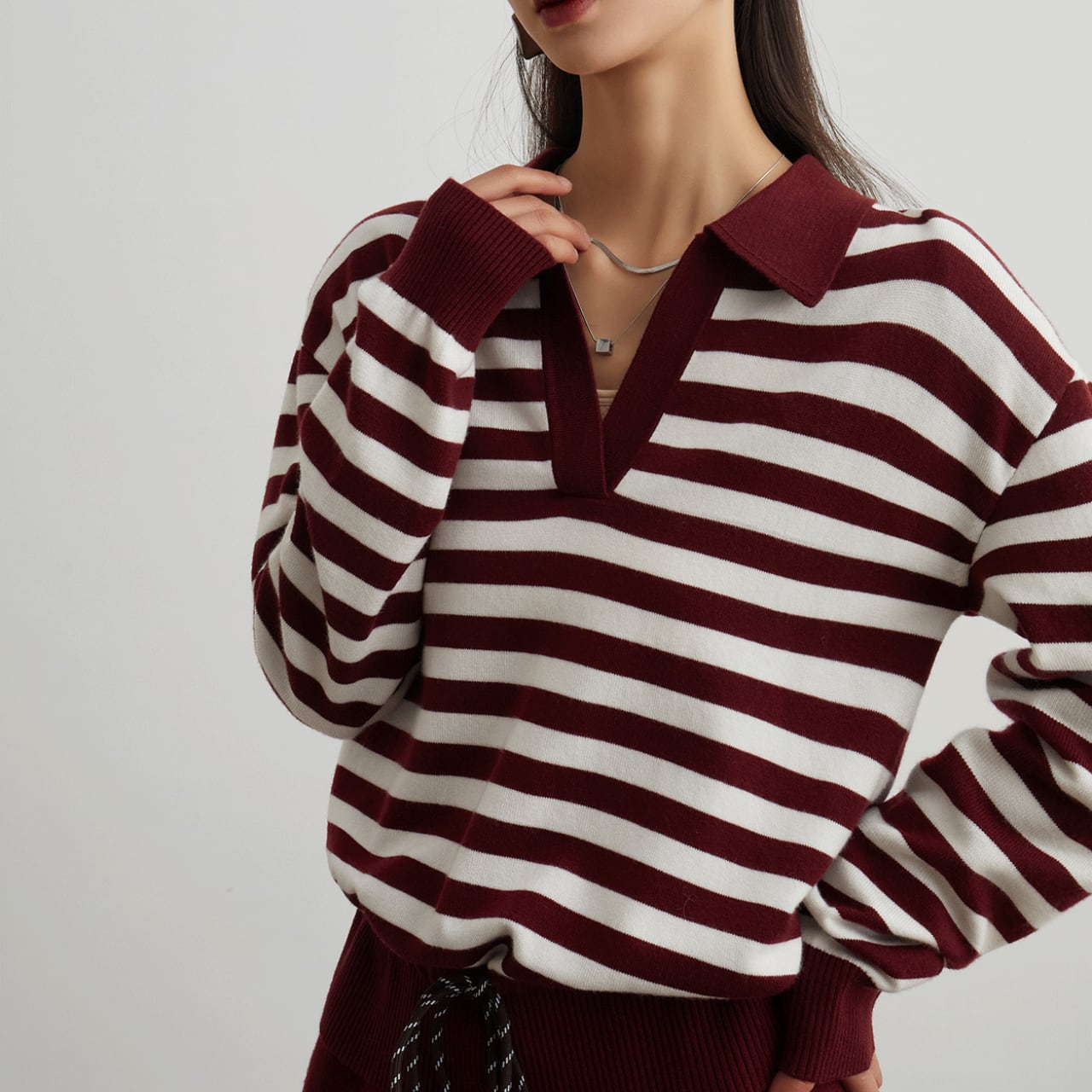 Red striped V-neck knit S678
