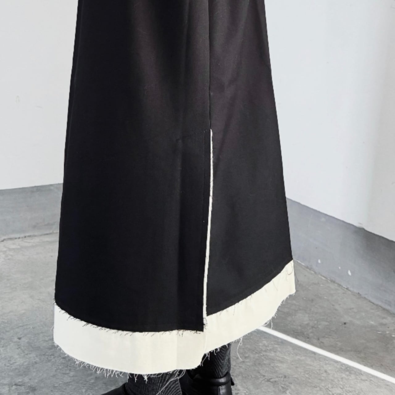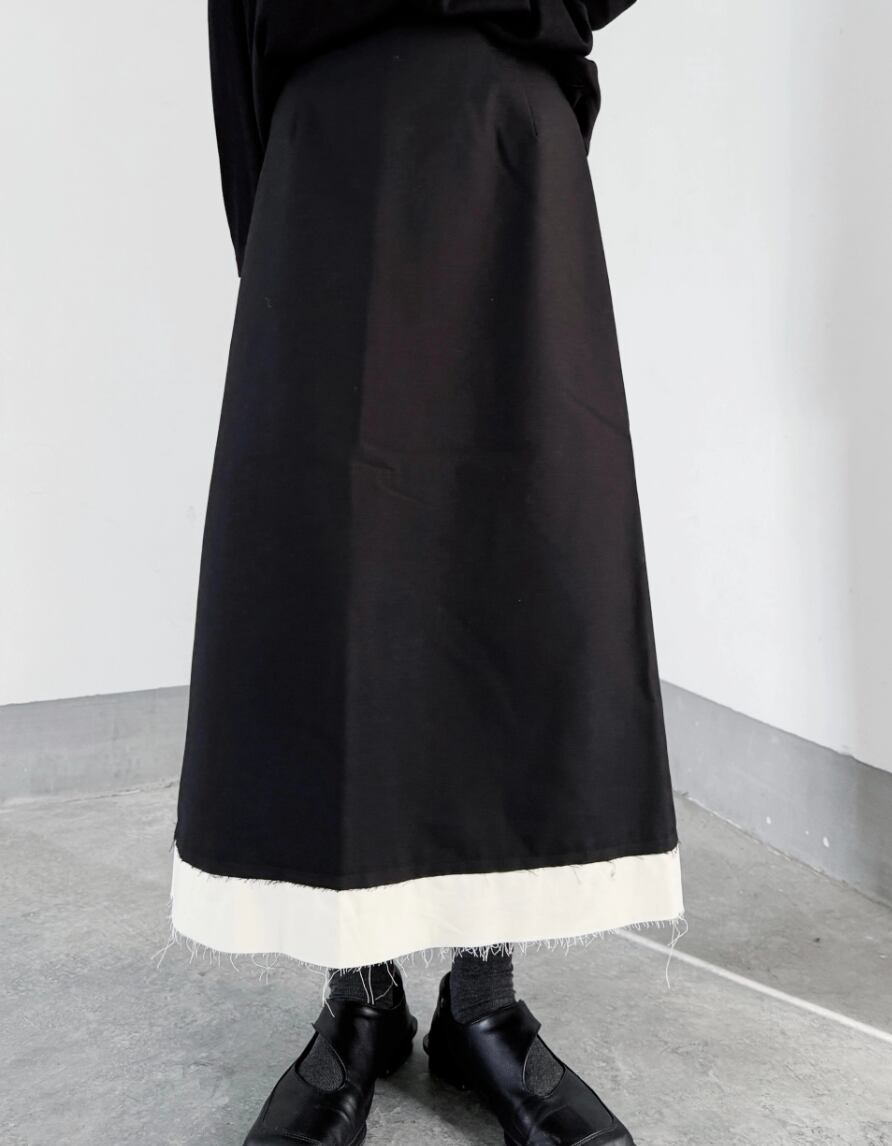 シンプルなようで計算された配色バランスが、ただのブラックスカートとは一線を画す存在感を放ちます。