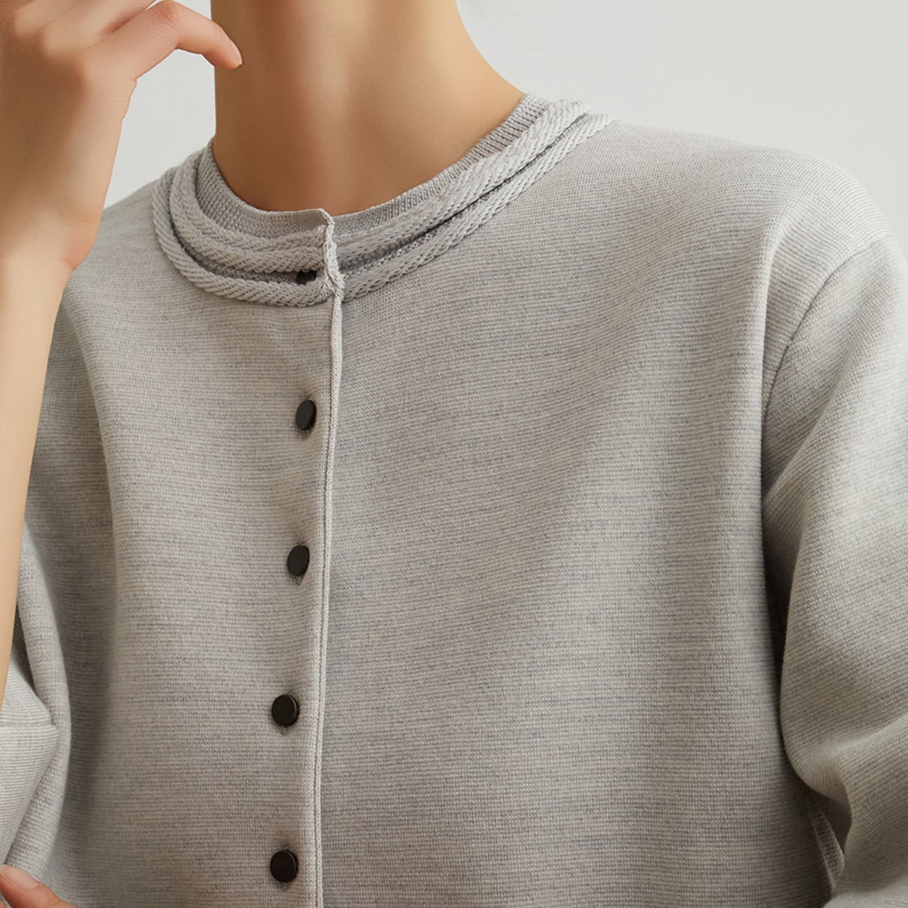 ふんわりとした袖のボリュームと、すっきりとした身頃のバランスが絶妙なカーディガン。