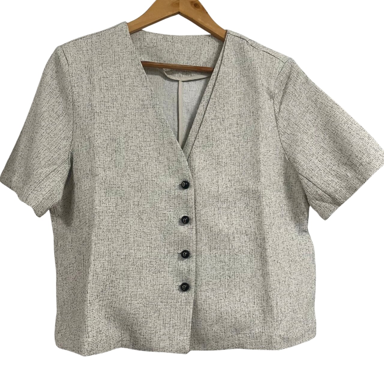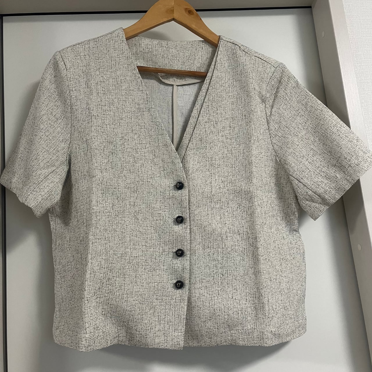 柔らかいグレーの色合いが、どんなスタイルにも馴染みやすく前ボタンの開閉や合わせるインナー次第で印象の変化を楽しむことができます◎