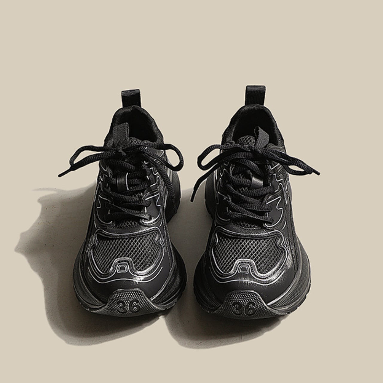 〜ボリュームという、新しい美学〜 ボリューム感のあるソールが生み出すのは、圧倒的な存在感と厚底のスタイルアップ効果。 複雑に組み合わされたアッパーデザインは、立体的な陰影を作り出し、足元を一気に今っぽい印象へと導きます。 ブラックはモードでクール、グレーはソフトで都会的。 どちらも、シンプルなコーディネートを一瞬で格上げする力を持っています。 ✔️おすすめのスタイリング ・スキニーデニムと合わせてバランスコーデに。 ・ワイドパンツと合わせてストリートスタイルに。 ・ワンピースに合わせてエレカジコーデを楽しむのもオススメ。 ■カラー ・シルバー ・ブラック ■サイズ 35 22.5cm 36 23cm 37 23.5cm 38 24cm 39 24.5cm ヒール高さ:約5cm ※採寸方法や個人差により1~3cmの誤差がある場合がございます。 ■商品番号 S721 ・・━━・・━━・・━━・・━━・・━━・・━━・・ 【お届けについて】 当ショップの商品は海外より取り寄せ・発送となりますので、ご入金から3~4週間前後で発送いたします。 【お支払い方法について】 ・クレジットカード決済(VISA/Master/JCB/AMERICAN EXPRESS) ・キャリア決済(docomo/au/Softbank/Y!mobile) ・あと払い Pay ID決済 【注意事項】 ・商品の在庫切れや生産中止、生産遅延が発生した場合は、注文キャンセルとなる可能性がありますので、予めご了承ください。 ・こちらは輸入品となりますので、日本製品とは検品基準が異なります。新品未使用品でもごくわずかな汚れや傷がある場合がございます。 ・イメージ違いやサイズ・カラー相違による返品・交換はお断りします。 ・お手持ちのスマートフォンやパソコンの液晶環境によって、商品のお色味が若干異なる場合があります。 ・発送時期によりデザイン・素材・細部が変更される場合があります。 ご購入前にこちらをお読みください →https://solemy.base.shop/blog/2024/11/20/121101 ・・━━・・━━・・━━・・━━・・━━・・━━・・