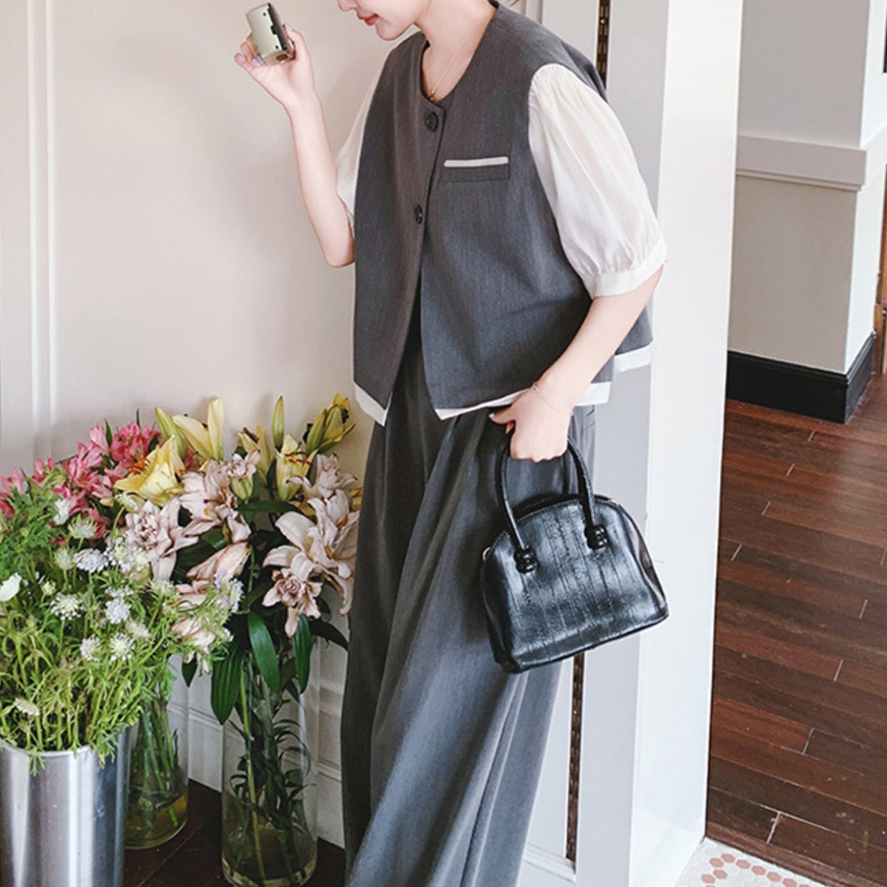 〜フェイクデザインの魔法〜 パッチワークトップス&パンツセット。 重ね着をしているかのようなデザインで、コントラストカラーがオシャレなセットアップです。 カジュアルながらも、パッチワークのアクセントで個性的なスタイルを演出します! 前ボタンを開けたり、インナーを見せるコーディネートをしたりと幅広く楽しむことができます◎ ✔️おすすめのスタイリング ・スニーカーを合わせてカジュアルダウン。 ・ジャケットを羽織ってこなれ感のあるスタイリングに。 ・ヒールを合わせてエレガントスタイル。 ■カラー グレー ■サイズ トップス XS 着丈:48cm 胸囲:96cm 肩幅:39cm 袖丈:26cm S 着丈:49cm 胸囲:100cm 肩幅:40cm 袖丈:27cm M 着丈:50cm 胸囲:104cm 肩幅:41cm 袖丈:28cm L 着丈:51cm 胸囲:108cm 肩幅:42cm 袖丈:29cm XL 着丈:52cm 胸囲:112cm 肩幅43cm 袖丈:30cm 【スカート】 XS 着丈:98cm ウエスト:59cm S 着丈:99cm ウエスト:63cm M 着丈:100cm ウエスト:67cm L 着丈:101cm ウエスト:71cm XL 着丈:102cm ウエスト:75cm ※採寸方法や個人差により1~3cmの誤差がある場合がございます。 ■モデル 身長:165cm 体重:47kg Mサイズ着用 ■商品番号 S723 ・・━━・・━━・・━━・・━━・・━━・・━━・・ 【お届けについて】 当ショップの商品は海外より取り寄せ・発送となりますので、ご入金から3~4週間前後で発送いたします。 【お支払い方法について】 ・クレジットカード決済(VISA/Master/JCB/AMERICAN EXPRESS) ・キャリア決済(docomo/au/Softbank/Y!mobile) ・あと払い Pay ID決済 【注意事項】 ・商品の在庫切れや生産中止、生産遅延が発生した場合は、注文キャンセルとなる可能性がありますので、予めご了承ください。 ・こちらは輸入品となりますので、日本製品とは検品基準が異なります。新品未使用品でもごくわずかな汚れや傷がある場合がございます。 ・イメージ違いやサイズ・カラー相違による返品・交換はお断りします。 ・お手持ちのスマートフォンやパソコンの液晶環境によって、商品のお色味が若干異なる場合があります。 ・発送時期によりデザイン・素材・細部が変更される場合があります。 ご購入前にこちらをお読みください →https://solemy.base.shop/blog/2024/11/20/121101 ・・━━・・━━・・━━・・━━・・━━・・━━・・