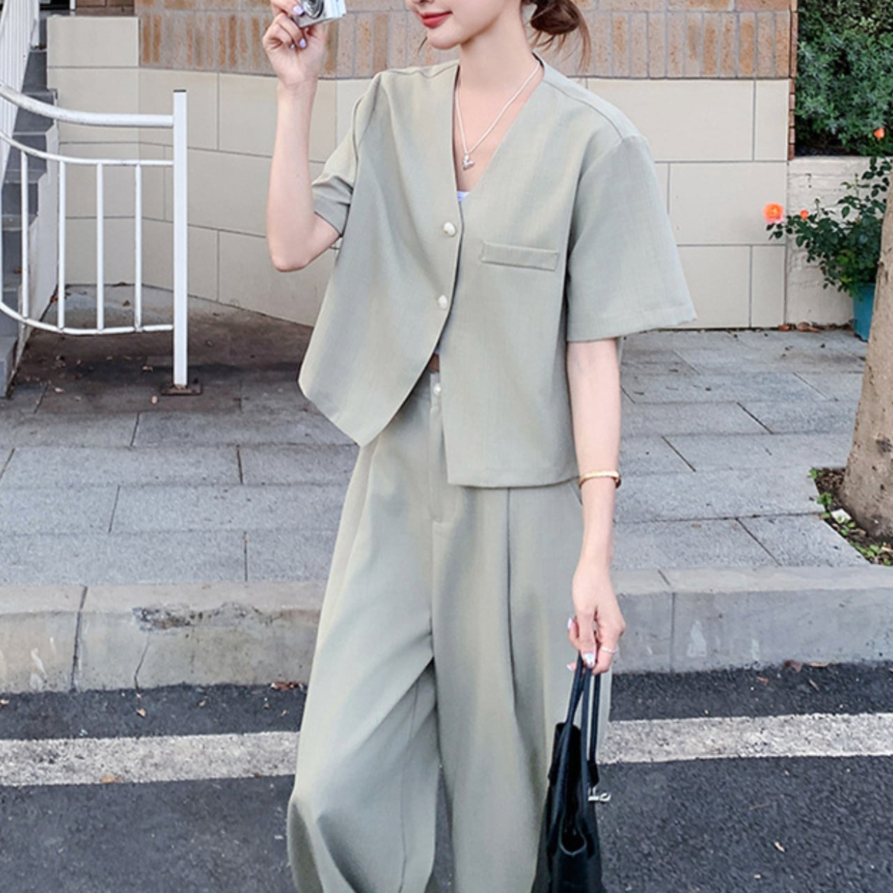〜コーデ自在の大人のセットアップ〜 半袖トップス&ワイドレッグパンツセット。 トップスは、Vネックのシングルブレストデザインで首元をスッキリと見せることができます。 ボトムスとセットアップで合わせることで洗練された雰囲気に◎ 前ボタンの開閉や、インナーの変化でコーディネートを楽しむことができます。 ✔️おすすめのスタイリング ・ヒールを合わせてエレガントな雰囲気に。 ・スニーカーにショルダーバッグを合わせてカジュアルな印象に。 ・Tシャツやブラウスを合わせてレイヤードを楽しむ。 ■カラー カーキ ■サイズ トップス XS 着丈:44cm 肩幅:38cm 胸囲:92cm 袖丈:21cm S 着丈:45cm 肩幅:39cm 胸囲:96cm 袖丈:22cm M 着丈:46cm 肩幅:40cm 胸囲:100cm 袖丈:23cm L 着丈:47cm 肩幅:41cm 胸囲:104cm 袖丈:24cm XL 着丈:48cm 肩幅:42cm 胸囲:108cm 袖丈:25cm パンツ XS 着丈:100cm ウエスト:60cm S 着丈:101cm ウエスト:64cm M 着丈:102cm ウエスト:68cm L 着丈:103cm ウエスト:72cm XL 着丈:104cm ウエスト:76cm ※採寸方法や個人差により1~3cmの誤差がある場合がございます。 ■モデル 身長:165cm 体重:47kg Mサイズ着用 ■商品番号 S728 ・・━━・・━━・・━━・・━━・・━━・・━━・・ 【お届けについて】 当ショップの商品は海外より取り寄せ・発送となりますので、ご入金から3~4週間前後で発送いたします。 【お支払い方法について】 ・クレジットカード決済(VISA/Master/JCB/AMERICAN EXPRESS) ・キャリア決済(docomo/au/Softbank/Y!mobile) ・あと払い Pay ID決済 【注意事項】 ・商品の在庫切れや生産中止、生産遅延が発生した場合は、注文キャンセルとなる可能性がありますので、予めご了承ください。 ・こちらは輸入品となりますので、日本製品とは検品基準が異なります。新品未使用品でもごくわずかな汚れや傷がある場合がございます。 ・イメージ違いやサイズ・カラー相違による返品・交換はお断りします。 ・お手持ちのスマートフォンやパソコンの液晶環境によって、商品のお色味が若干異なる場合があります。 ・発送時期によりデザイン・素材・細部が変更される場合があります。 ご購入前にこちらをお読みください →https://solemy.base.shop/blog/2024/11/20/121101 ・・━━・・━━・・━━・・━━・・━━・・━━・・