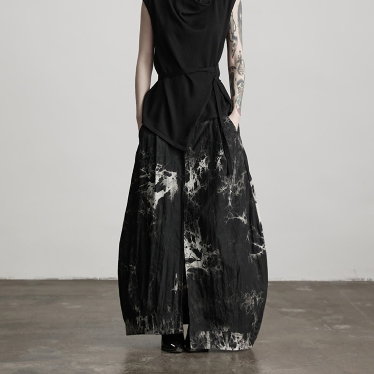 独特なインクペインティングが施されたデザインは存在感のある一着です。