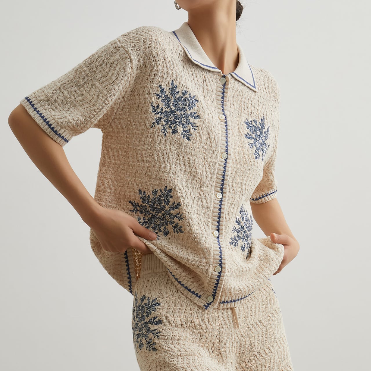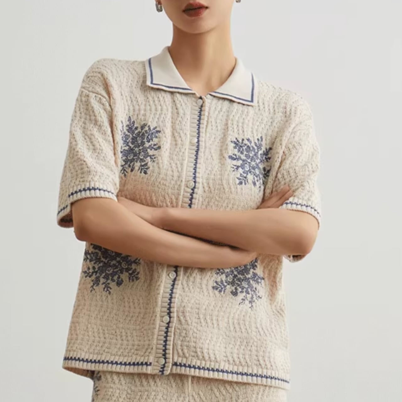 ベージュベースに散りばめられた上品な小花柄が、大人の女性らしさを自然に演出します。