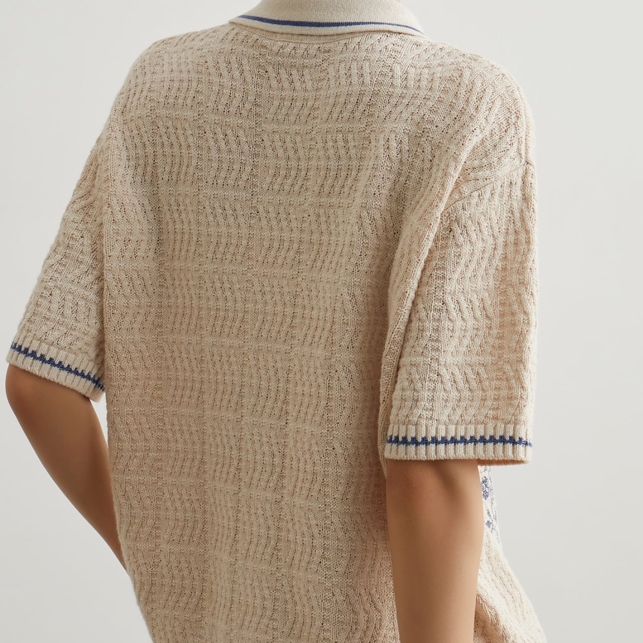 すっきりとしたポロネックで、首元をきれいに見せながら、きちんと感も演出する洗練されたデザイン。