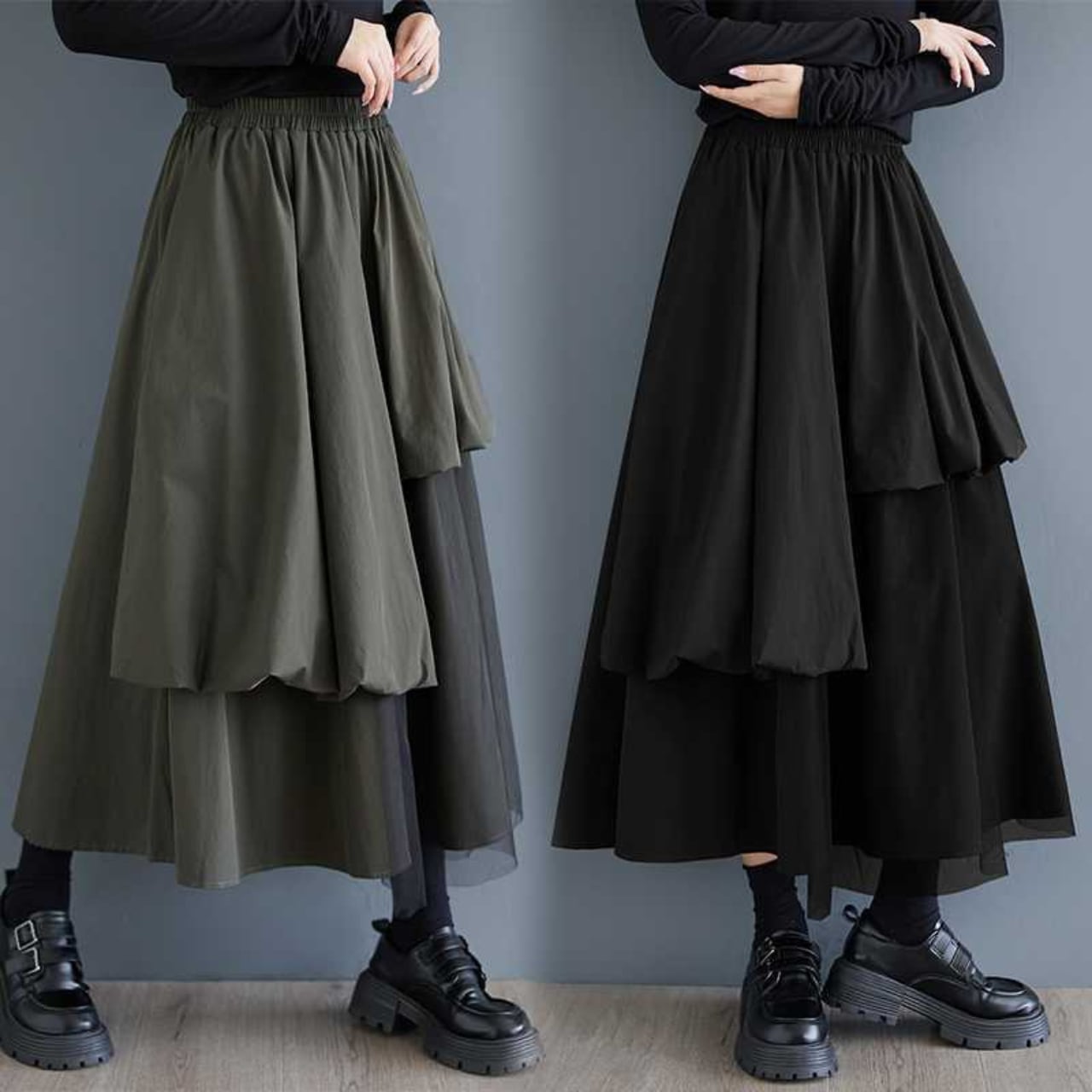 シンプルなトップスと合わせるだけで、一気にこなれた印象に。「人と被りたくない」という方にぴったりの、個性派スカートです。