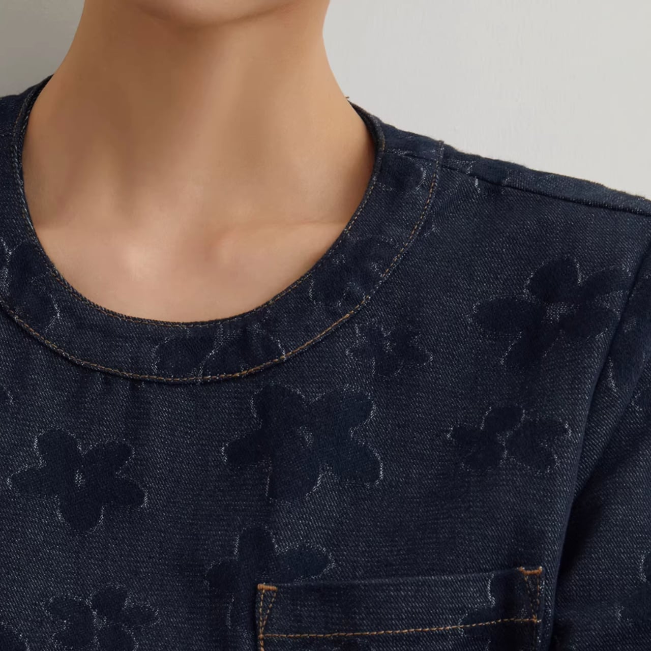 花柄デザインデニムワンピース。