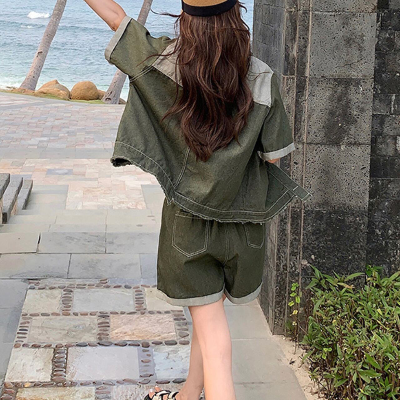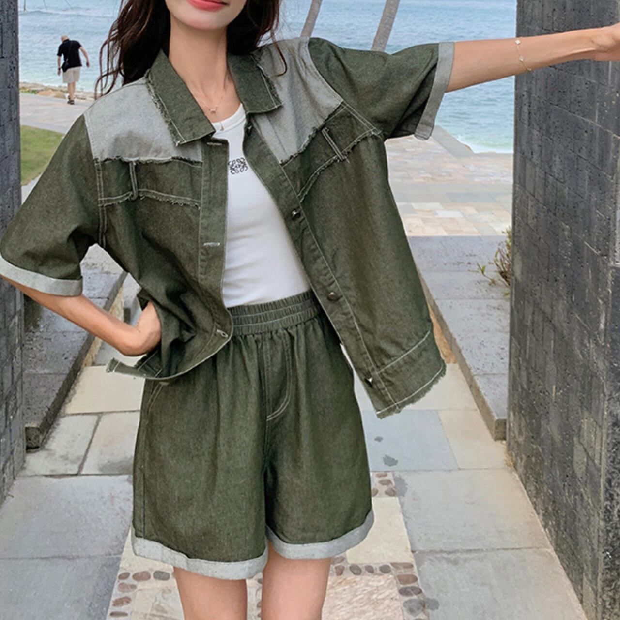 デニムシャツ&ショートパンツセット。 カジュアルでアクティブな印象を与えるデニムシャツとショートパンツのセットです。 シャツはリラックス感のあるゆるシルエットで、パッチワークデザインがアクセントとなります。 ショートパンツは、ウエストゴムで動きやすく暑い季節にも快適に着用でき、デイリースタイルにぴったりのアイテムです。 ■カラー グリーン ■サイズ シャツ XS 着丈:57cm 肩幅:42cm 胸囲:102cm 袖丈:24cm S 着丈:58cm 肩幅:43cm 胸囲:106cm 袖丈:25cm M 着丈:59cm 肩幅:44cm 胸囲:110cm 袖丈:26cm L 着丈:60cm 肩幅:45cm 胸囲:114cm 袖丈:27cm XL 着丈:61cm 肩幅:46cm 胸囲:118cm 袖丈:28cm 2XL 着丈:62cm 肩幅:47cm 胸囲:122cm 袖丈:29cm パンツ XS 着丈:44cm ウエスト:54cm S 着丈:45cm ウエスト:59cm M 着丈:46cm ウエスト:63cm L 着丈:47cm ウエスト:67cm XL 着丈:48cm ウエスト:71cm 2XL 着丈:49cm ウエスト:75cm ※採寸方法や個人差により1~3cmの誤差がある場合がございます。 ■モデル 身長:168cm 体重:46kg Mサイズ着用 ■商品番号 S813 ・・━━・・━━・・━━・・━━・・━━・・━━・・ 【お届けについて】 当ショップの商品は海外より取り寄せ・発送となりますので、ご入金から3~4週間前後で発送いたします。 【お支払い方法について】 ・クレジットカード決済(VISA/Master/JCB/AMERICAN EXPRESS) ・キャリア決済(docomo/au/Softbank/Y!mobile) ・あと払い Pay ID決済 【注意事項】 ・商品の在庫切れや生産中止、生産遅延が発生した場合は、注文キャンセルとなる可能性がありますので、予めご了承ください。 ・こちらは輸入品となりますので、日本製品とは検品基準が異なります。新品未使用品でもごくわずかな汚れや傷がある場合がございます。 ・イメージ違いやサイズ・カラー相違による返品・交換はお断りします。 ・お手持ちのスマートフォンやパソコンの液晶環境によって、商品のお色味が若干異なる場合があります。 ・発送時期によりデザイン・素材・細部が変更される可能性があります。 ご購入前にこちらをお読みください →https://solemy.base.shop/blog/2024/11/20/121101 ・・━━・・━━・・━━・・━━・・━━・・━━・・