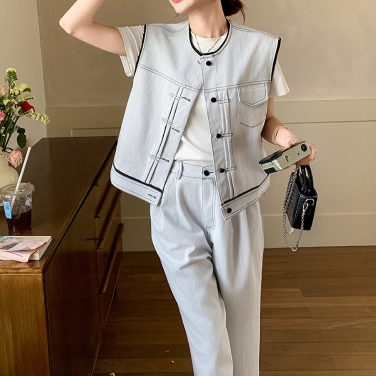Tシャツ&ベスト&パンツセット。