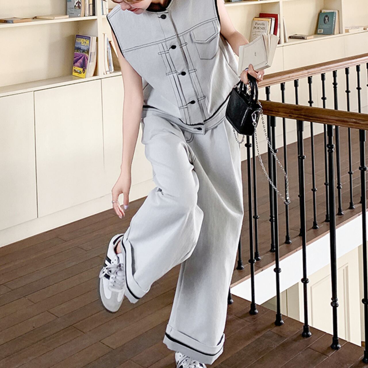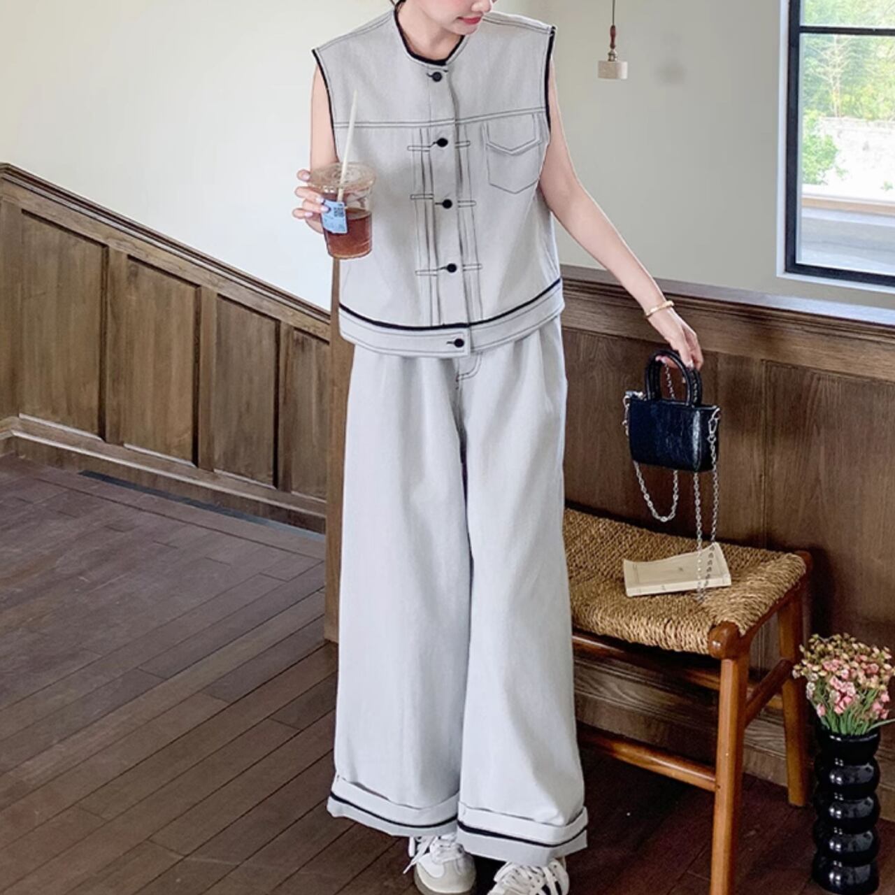 カジュアルでありながら、シンプルさの中におしゃれさを兼ね備えたスリーピースセットです。