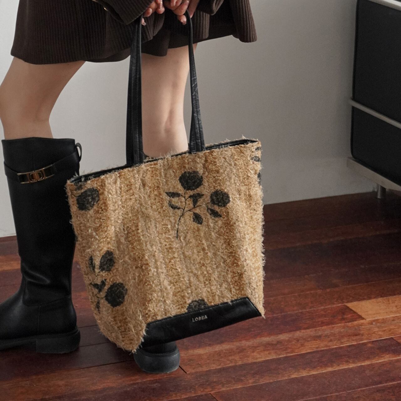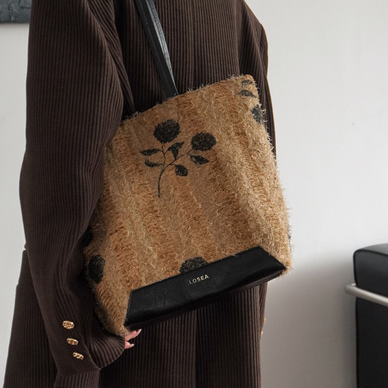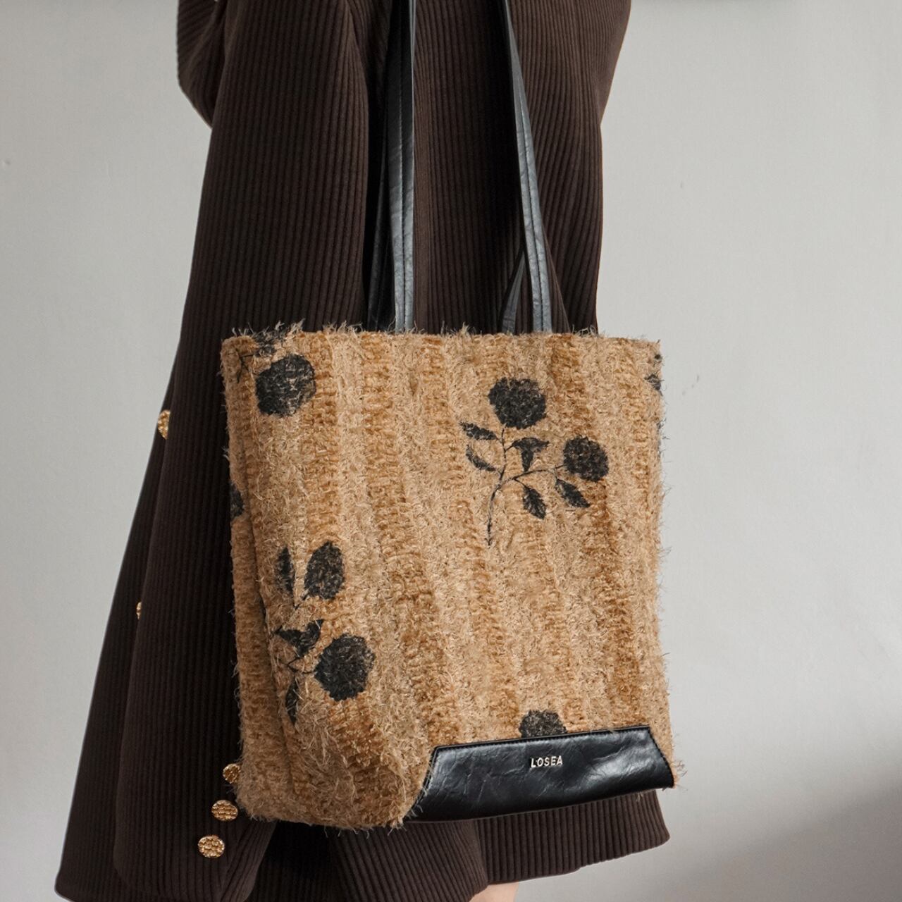 ヴィンテージライクな色調とクラシカルな花柄が、大人の女性にふさわしい上質な雰囲気を演出するトートバッグ。
