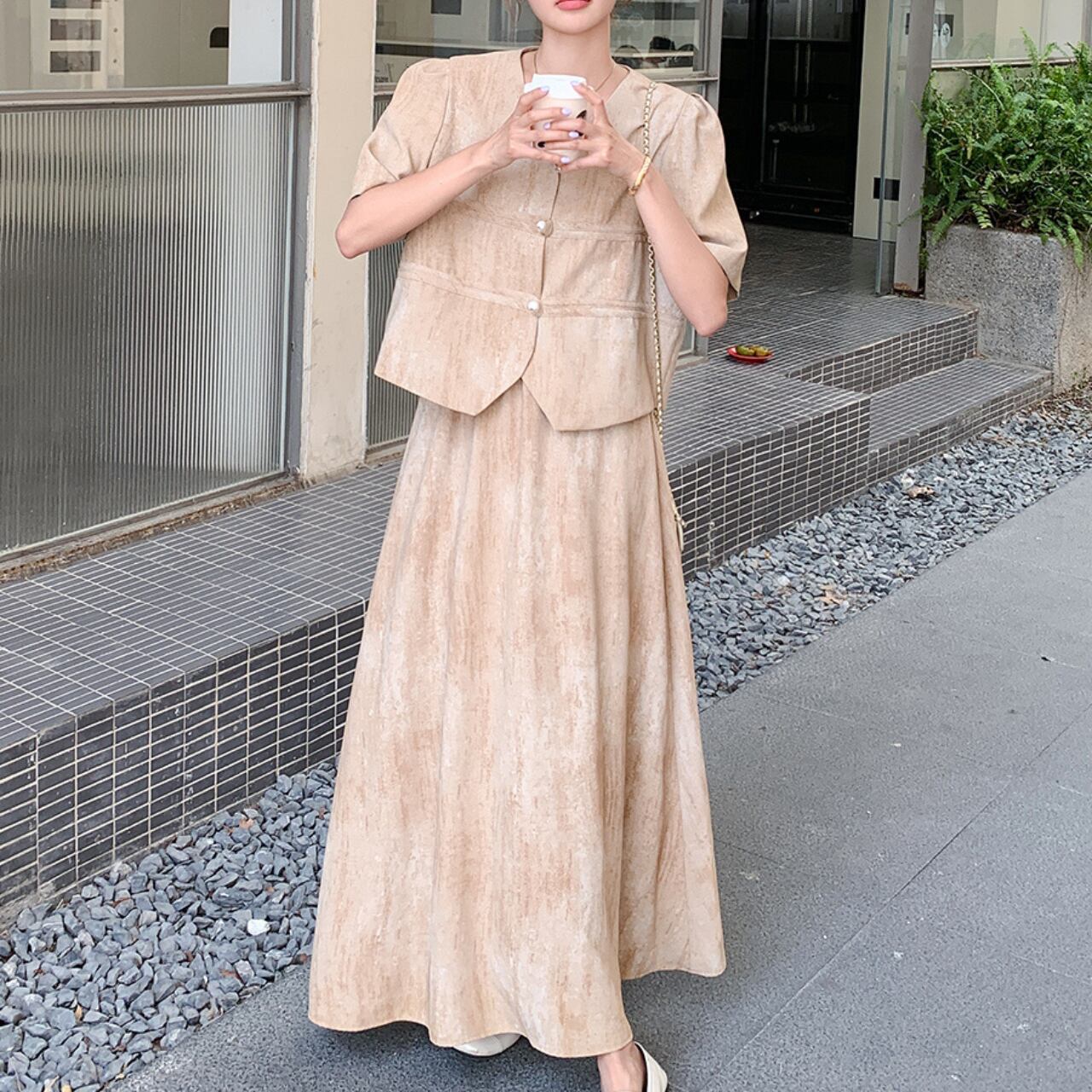 美しい絞り染めが施されたトップスとスカートのセットアップです。 ノーカラーのシングルブレストはスッキリした印象を与え、シンプルながらもクラシックな存在感を放つデザインが特徴です。 リラックスした着心地で、デイリースタイルにも特別なシーンにも活躍するアイテムです! ■カラー ブラウン ■サイズ トップス XS 着丈:47cm 肩幅:36cm 胸囲:96cm 袖丈:27cm S 着丈:48cm 肩幅:37cm 胸囲:100cm 袖丈:28cm M 着丈:49cm 肩幅:38cm 胸囲:104cm 袖丈:29cm L 着丈:50cm 肩幅:39cm 胸囲:108cm袖丈:30cm XL 着丈:51cm 肩幅:40cm 胸囲:112cm袖丈:31cm 【スカート】 XS 着丈:90cm ウエスト:58-61cm S 着丈:91cm ウエスト:61-64cm M 着丈:92cm ウエスト:64-67cm L 着丈:93cm ウエスト:67-70cm XL 着丈:94cm ウエスト:70-73cm ※採寸方法や個人差により1~3cmの誤差がある場合がございます。 ■モデル 身長:165cm 体重:47kg Mサイズ着用 ■商品番号 S843 ・・━━・・━━・・━━・・━━・・━━・・━━・・ 【お届けについて】 当ショップの商品は海外より取り寄せ・発送となりますので、ご入金から3~4週間前後で発送いたします。 【お支払い方法について】 ・クレジットカード決済(VISA/Master/JCB/AMERICAN EXPRESS) ・キャリア決済(docomo/au/Softbank/Y!mobile) ・あと払い Pay ID決済 【注意事項】 ・商品の在庫切れや生産中止、生産遅延が発生した場合は、注文キャンセルとなる可能性がありますので、予めご了承ください。 ・こちらは輸入品となりますので、日本製品とは検品基準が異なります。新品未使用品でもごくわずかな汚れや傷がある場合がございます。 ・イメージ違いやサイズ・カラー相違による返品・交換はお断りします。 ・お手持ちのスマートフォンやパソコンの液晶環境によって、商品のお色味が若干異なる場合があります。 ・発送時期によりデザイン・素材・細部が変更される場合があります。 ご購入前にこちらをお読みください →https://solemy.base.shop/blog/2024/11/20/121101 ・・━━・・━━・・━━・・━━・・━━・・━━・・