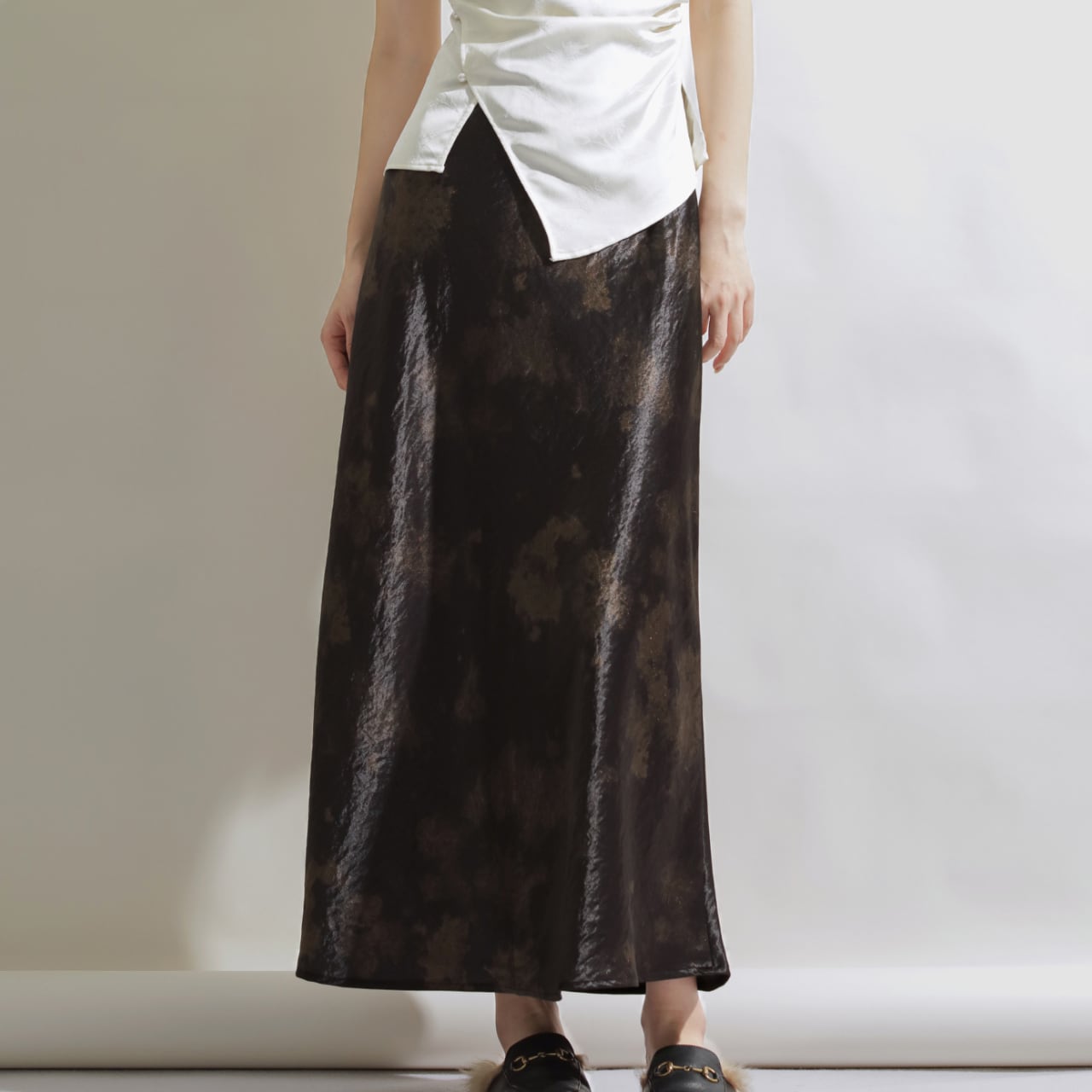 まるで水彩画のようなニュアンス柄が、動くたびに異なる表情を見せてくれる特別な一枚。