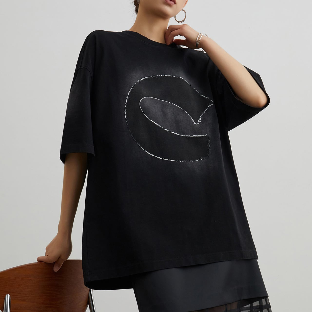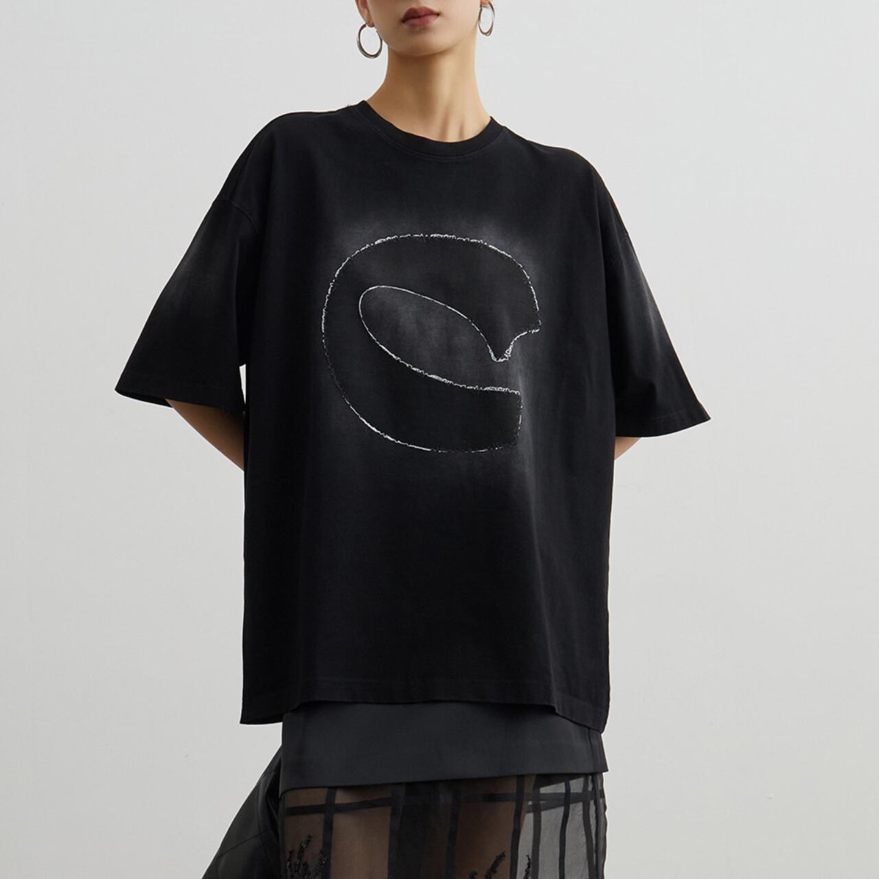 Black unique print T-shirt S858