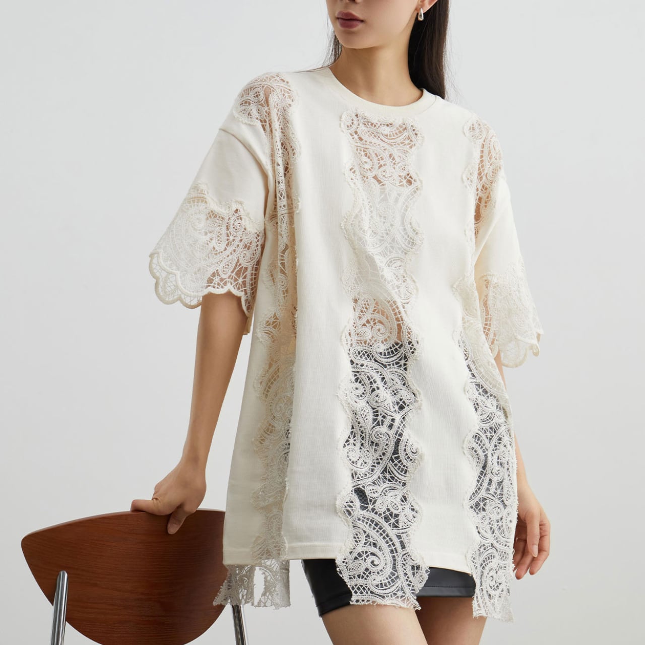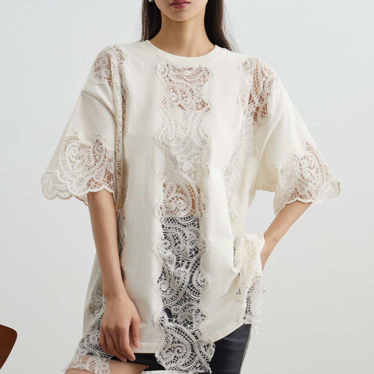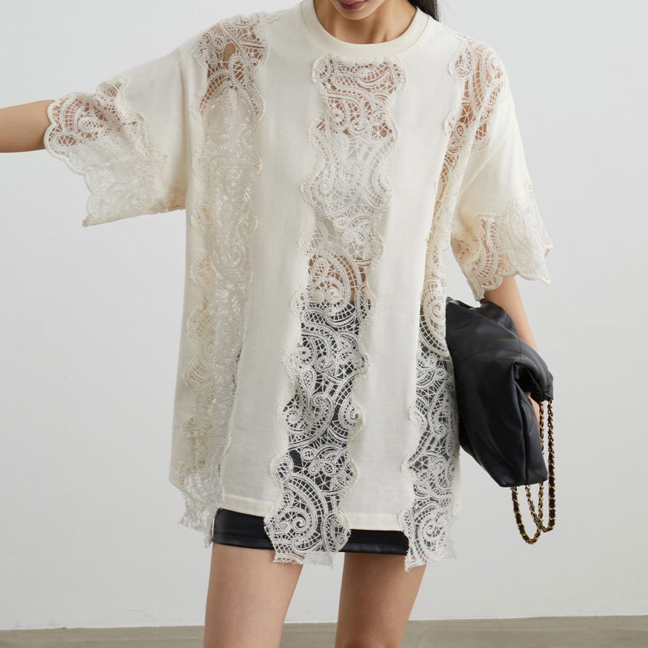 繊細なレース素材を使用したホワイトのTシャツです。 交互になったホローディテールが特徴的で、涼しげな印象を与えるデザインです。 カジュアルシーンから特別なお出かけまで幅広く活躍します。 これ一枚でコーディネートに華やかさをプラスするアイテムです! ■カラー ホワイト ■サイズ S 着丈: 64cm 肩幅: 30cm 胸囲: 98cm 袖丈: 21cm M 着丈: 65cm 肩幅: 31cm 胸囲: 102cm 袖丈: 22cm L 着丈: 66cm 肩幅: 32cm 胸囲: 106cm 袖丈: 23cm XL 着丈: 67cm 肩幅: 33cm 胸囲: 110cm 袖丈: 24cm ※採寸方法や個人差により1~3cmの誤差がある場合がございます。 ■モデル 身長: 166cm 体重: 45kg Mサイズ着用 ■商品番号 S859 ・・━━・・━━・・━━・・━━・・━━・・━━・・ 【お届けについて】 当ショップの商品は海外より取り寄せ・発送となりますので、ご入金から3~4週間前後で発送いたします。 【お支払い方法について】 ・クレジットカード決済(VISA/Master/JCB/AMERICAN EXPRESS) ・キャリア決済(docomo/au/Softbank/Y!mobile) ・あと払い Pay ID決済 【注意事項】 ・商品の在庫切れや生産中止、生産遅延が発生した場合は、注文キャンセルとなる可能性がありますので、予めご了承ください。 ・こちらは輸入品となりますので、日本製品とは検品基準が異なります。新品未使用品でもごくわずかな汚れや傷がある場合がございます。 ・イメージ違いやサイズ・カラー相違による返品・交換はお断りします。 ・お手持ちのスマートフォンやパソコンの液晶環境によって、商品のお色味が若干異なる場合があります。 ・発送時期によりデザイン・素材・細部が変更される場合があります。 ご購入前にこちらをお読みください →https://solemy.base.shop/blog/2024/11/20/121101 ・・━━・・━━・・━━・・━━・・━━・・━━・・