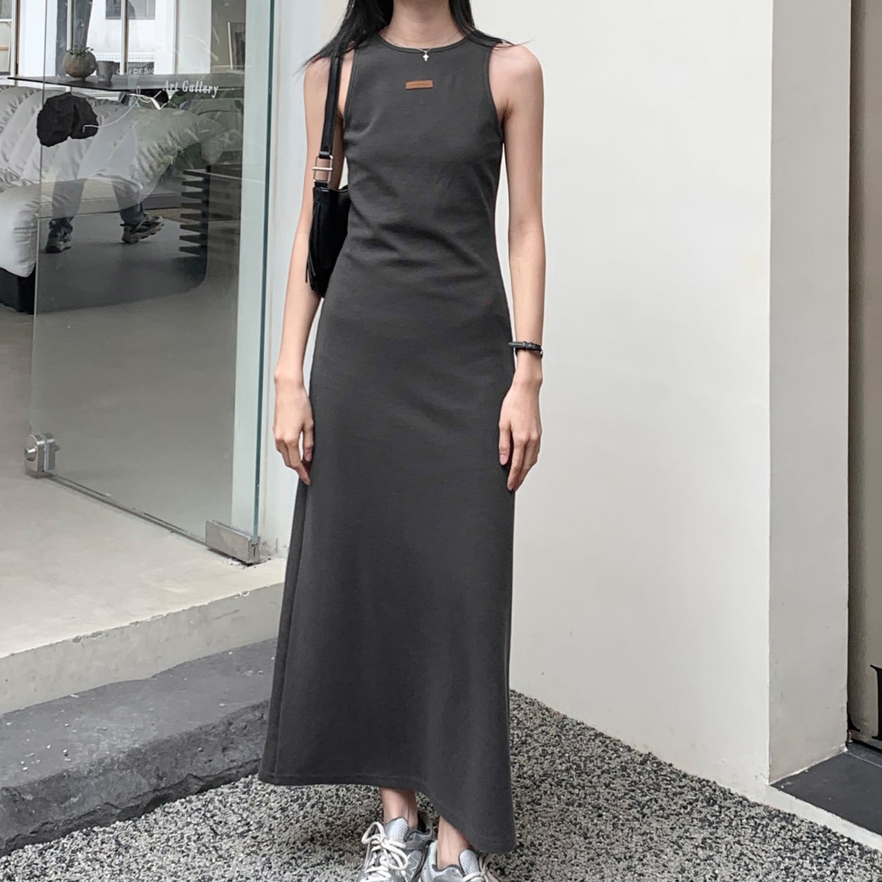 バッククロスデザインが印象的なノースリーブワンピースです。