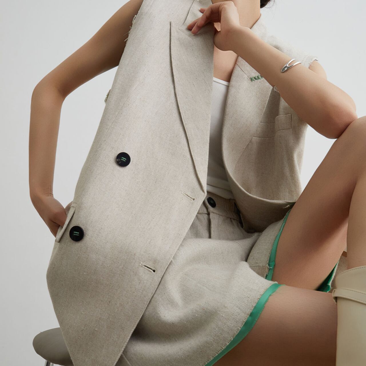 コントラストカラーが特徴のベストです。 裏地とラペルの刺繍のグリーンがリンクしており、シンプルながらもコントラストカラーが華やかさをプラスします。 単品使いはもちろん、シャツやブラウスと重ねて着用するのもおすすめです。 ■カラー ベージュ ■サイズ S 着丈:64cm 肩幅:30cm 胸囲:98cm M 着丈:65cm 肩幅:31cm 胸囲:102cm L 着丈:66cm 肩幅:32cm 胸囲:106cm XL 着丈:67cm 肩幅:33cm 胸囲:110cm ※採寸方法や個人差により1~3cmの誤差がある場合がございます。 ■モデル 身長:166cm 体重:45kg Mサイズ着用 ■商品番号 S936 ・・━━・・━━・・━━・・━━・・━━・・━━・・ 【お届けについて】 当ショップの商品は海外より取り寄せ・発送となりますので、ご入金から3~4週間前後で発送いたします。 【お支払い方法について】 ・クレジットカード決済(VISA/Master/JCB/AMERICAN EXPRESS) ・キャリア決済(docomo/au/Softbank/Y!mobile) ・あと払い Pay ID決済 【注意事項】 ・商品の在庫切れや生産中止、生産遅延が発生した場合は、注文キャンセルとなる可能性がありますので、予めご了承ください。 ・こちらは輸入品となりますので、日本製品とは検品基準が異なります。新品未使用品でもごくわずかな汚れや傷がある場合がございます。 ・イメージ違いやサイズ・カラー相違による返品・交換はお断りします。 ・お手持ちのスマートフォンやパソコンの液晶環境によって、商品のお色味が若干異なる場合があります。 ・発送時期によりデザイン・素材・細部が変更される場合があります。 ご購入前にこちらをお読みください →https://solemy.base.shop/blog/2024/11/20/121101 ・・━━・・━━・・━━・・━━・・━━・・━━・・
