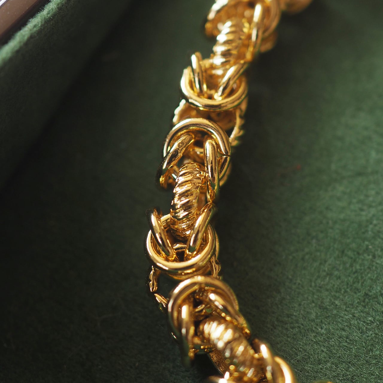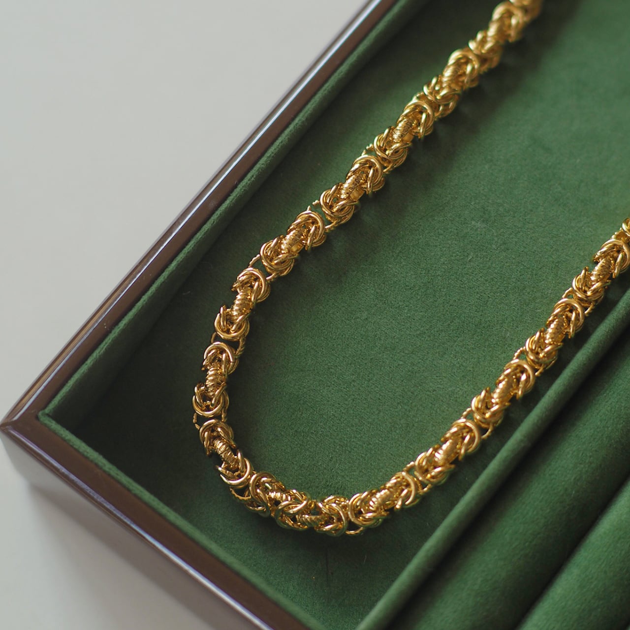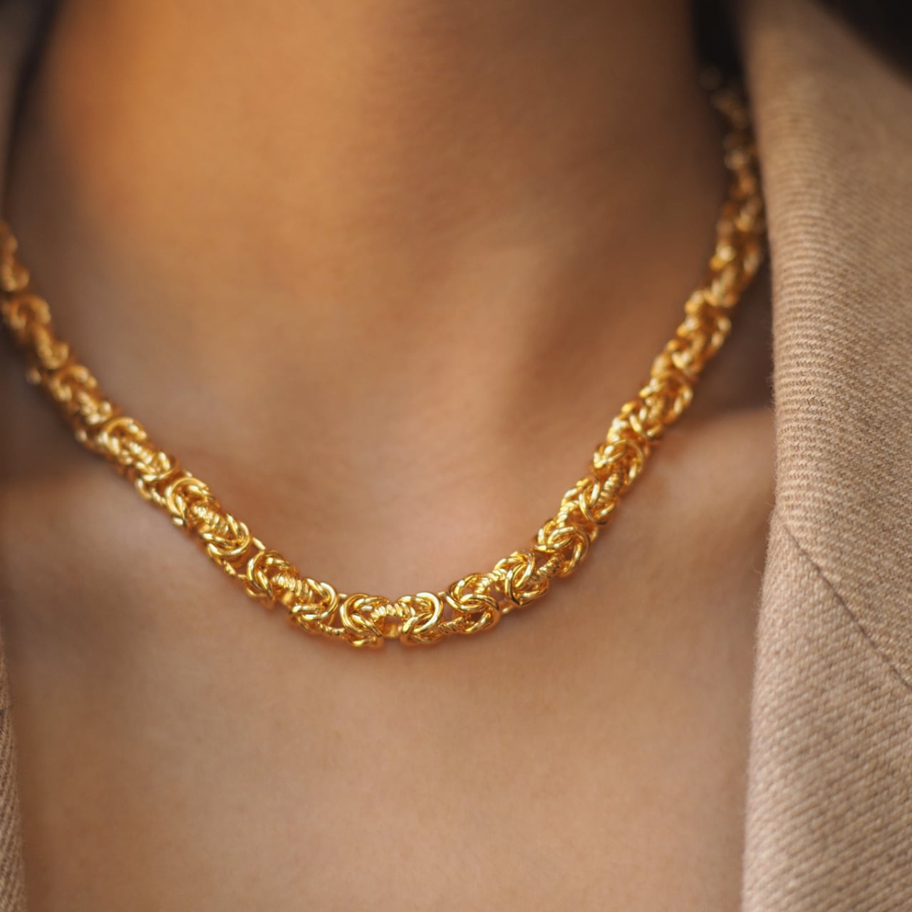 ツイストデザインが光を反射し、動くたびに上品な輝きを放つゴールドチェーンネックレス。