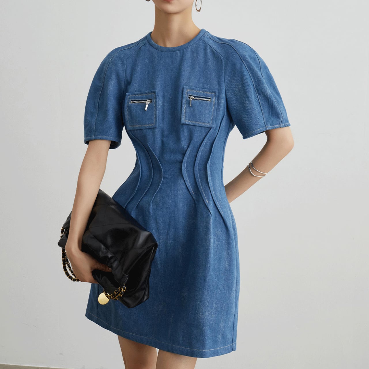華やかさとカジュアルさを兼ね備えたデニムワンピースです。