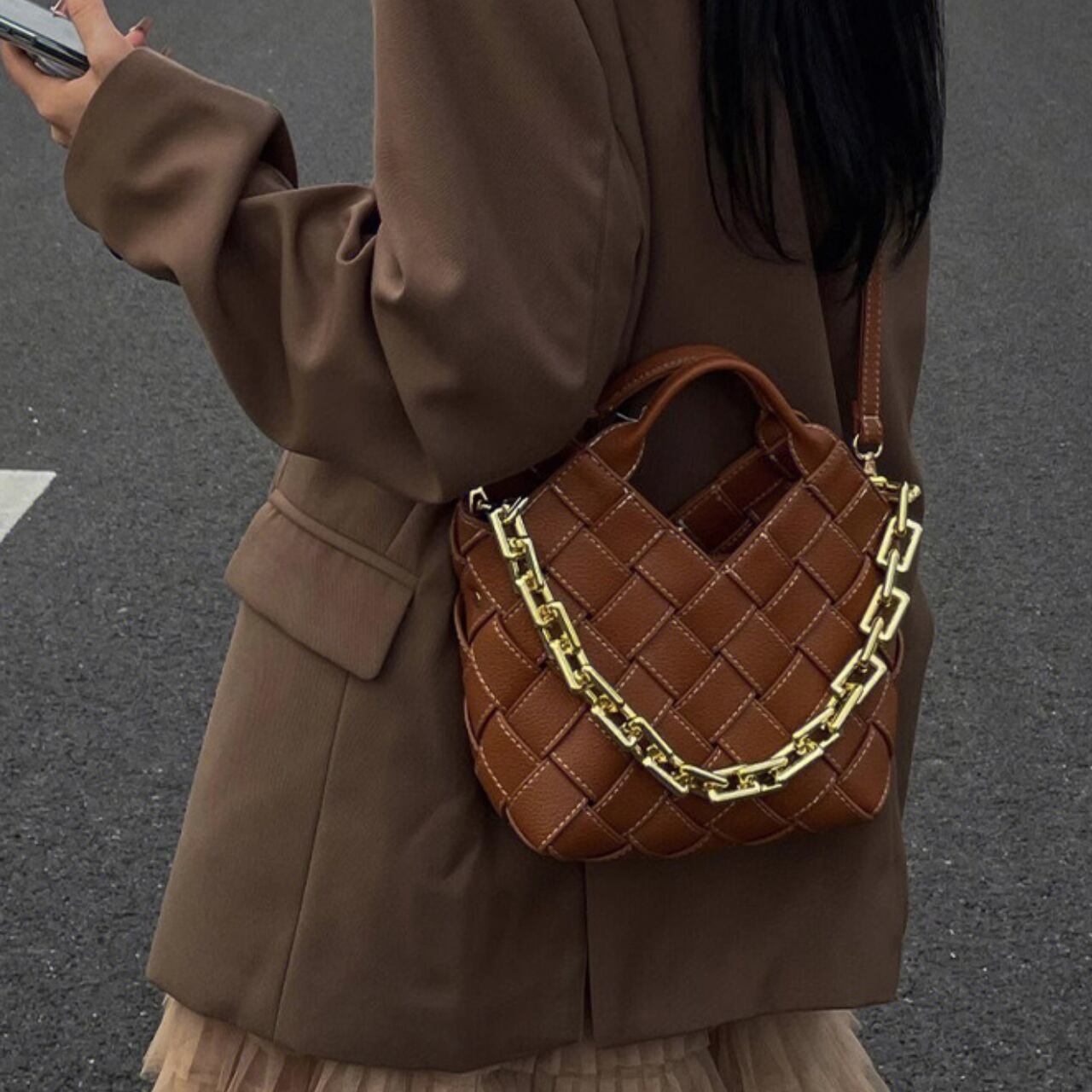 Woven chain 2way bag S984
