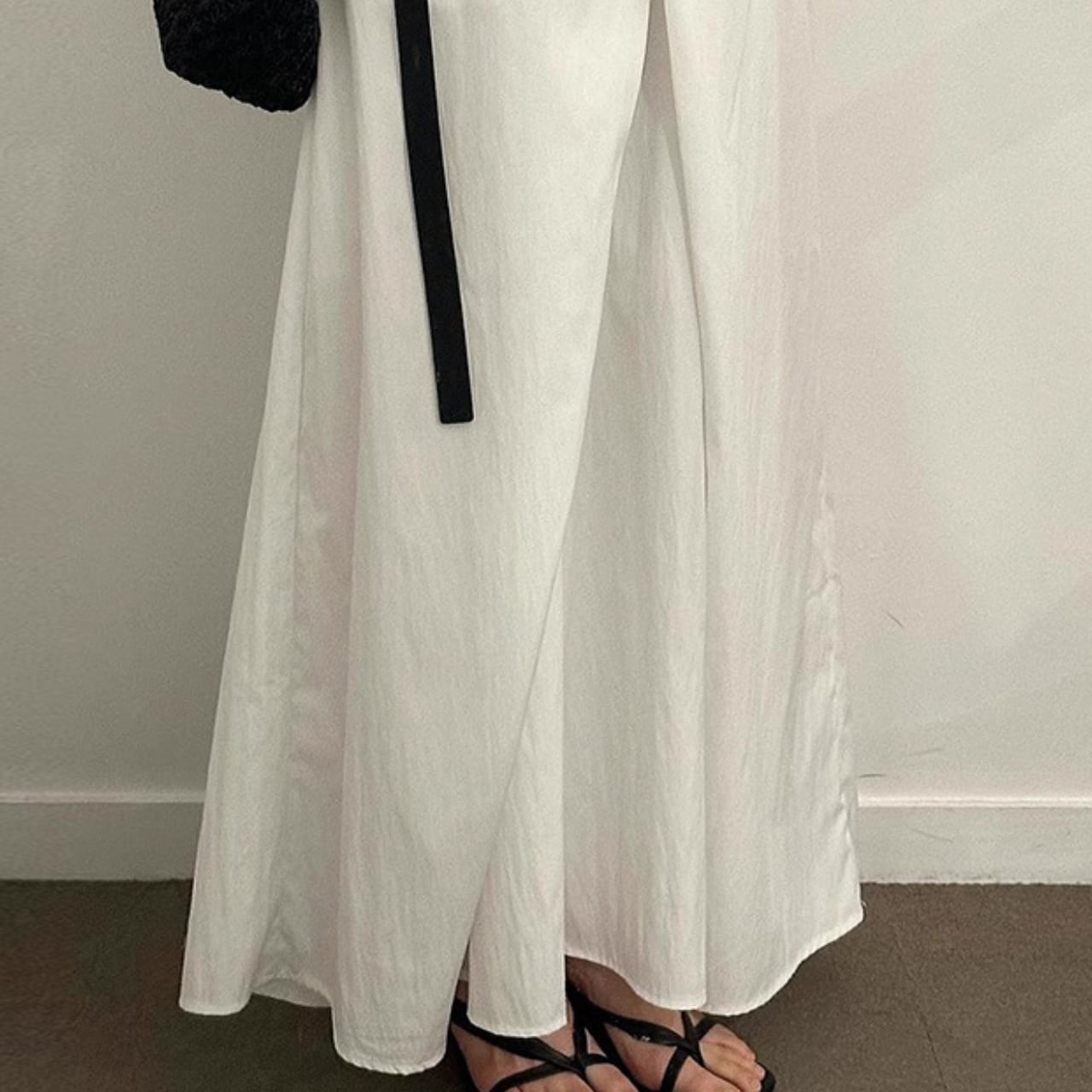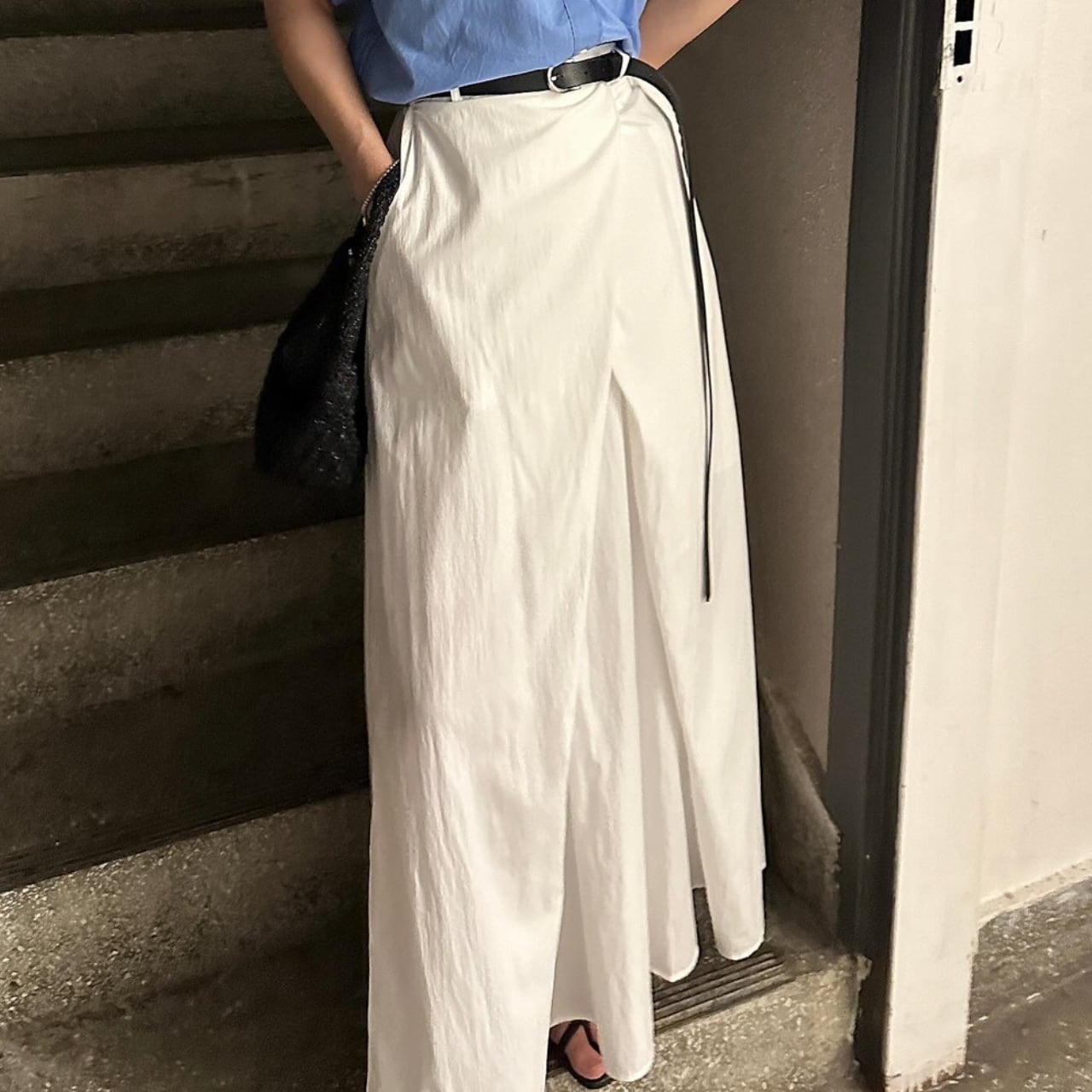 プリーツの優雅な揺れ、そして計算し尽くされたロング丈。