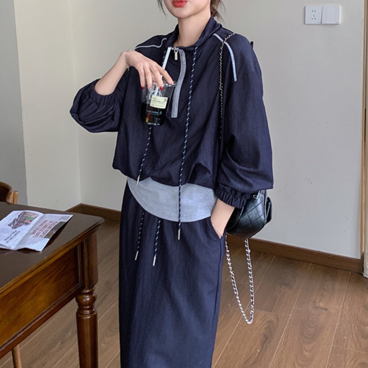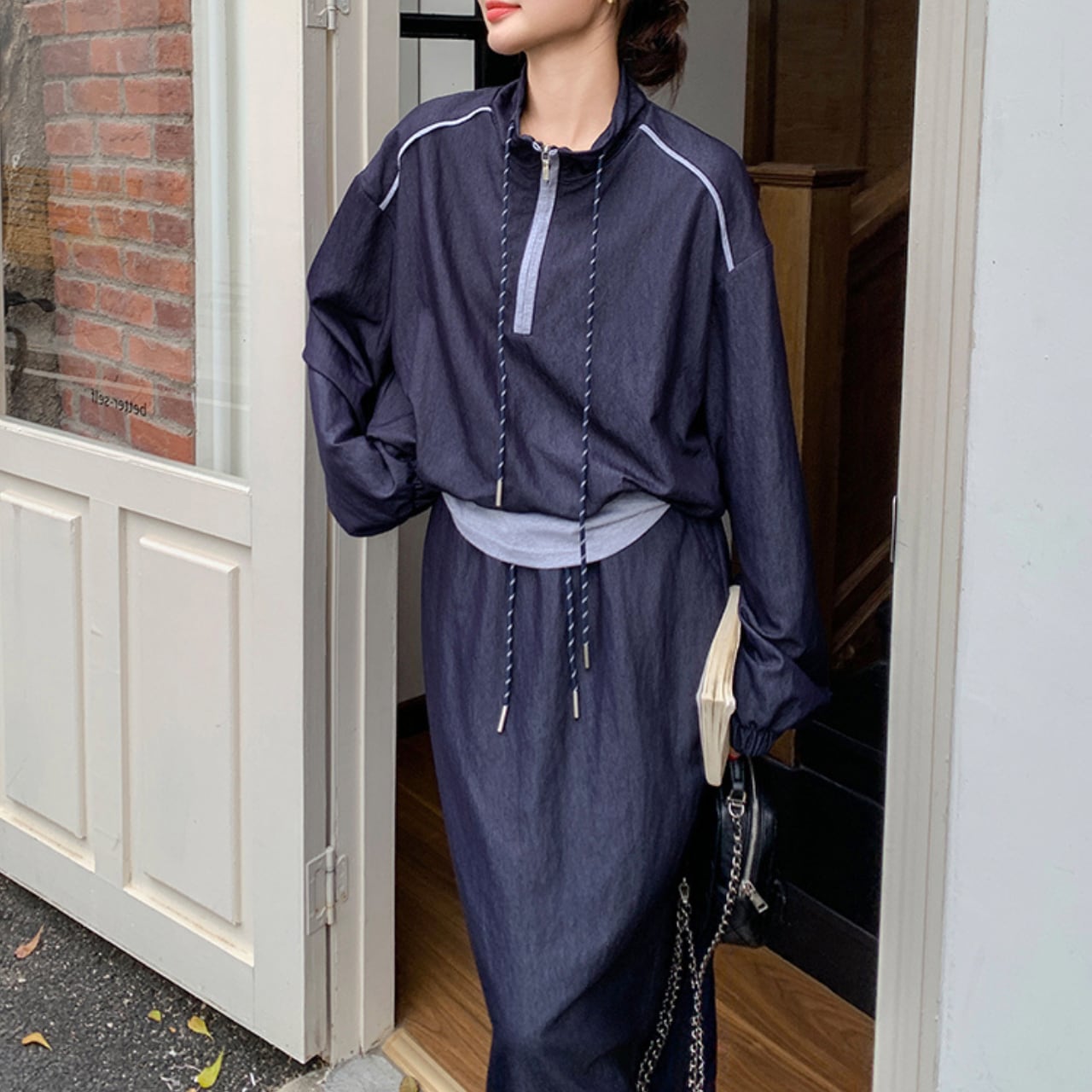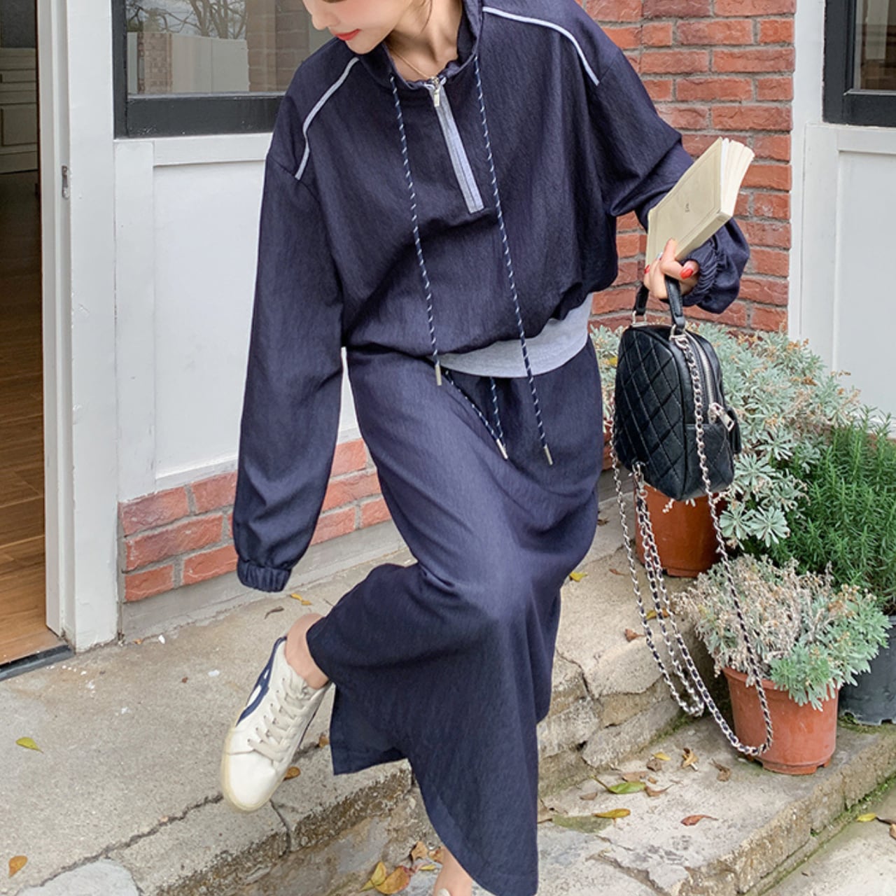 〜リラックスと洗練が、同居する〜 カジュアルなのに、きちんと見える。 ネイビーブルーの上品さとスポーティなデザインが融合した、新しいリラックススタイル。 コントラストの配色デザインが、顔周りをすっきりと引き締めます。 スポーティな印象ながら、清潔感と知的な雰囲気を演出。 カジュアルになりすぎない絶妙なバランスが魅力です。 肩の力を抜いたリラックス感がありながら、だらしなく見えない絶妙なシルエット。 華奢見え効果もあり、ゆったりと着られるのに洗練された印象をキープします。 ✔️おすすめのスタイリング ・スニーカーを合わせてカジュアルコーデ。 ・ハイネックアイテムと重ねてレイヤードを楽しむ。 ・ヒールにハンドバッグを持ってエレカジコーデ。 ■カラー ネイビー ■サイズ トップス XS 着丈:55cm 肩幅:53cm 胸囲:106cm 袖丈:52cm S 着丈:56cm 肩幅:54cm 胸囲:110cm 袖丈:53cm M 着丈:57cm 肩幅:55cm 胸囲:114cm 袖丈:54cm L 着丈:58cm 肩幅:56cm 胸囲:118cm袖丈:55cm XL 着丈:59cm 肩幅:57cm 胸囲:122cm袖丈:56cm 2XL 着丈:60cm 肩幅:58cm 胸囲:126cm袖丈:57cm スカート XS 着丈:82cm ウエスト:59cm S 着丈:83cm ウエスト:62cm M 着丈:84cm ウエスト:65cm L 着丈:85cm ウエスト:68cm XL 着丈:86cm ウエスト:71cm 2XL 着丈87:cm ウエスト:74cm ※採寸方法により1~3cmの誤差がある場合がございます。 ■モデル 身長: 165cm 体重: 46kg Mサイズ着用 ◼️素材 ポリエステル100% ■商品番号 S1004 ・・━━・・━━・・━━・・━━・・━━・・━━・・ 【お届けについて】 当ショップの商品は海外より取り寄せ・発送となりますので、ご入金から3~4週間前後で発送いたします。 【お支払い方法について】 ・クレジットカード決済(VISA/Master/JCB/AMERICAN EXPRESS) ・キャリア決済(docomo/au/Softbank/Y!mobile) ・あと払い Pay ID決済 【注意事項】 ・商品の在庫切れや生産中止、生産遅延が発生した場合は、注文キャンセルとなる可能性がありますので、予めご了承ください。 ・こちらは輸入品となりますので、日本製品とは検品基準が異なります。新品未使用品でもごくわずかな汚れや傷がある場合がございます。 ・イメージ違いやサイズ・カラー相違による返品・交換はお断りします。 ・お手持ちのスマートフォンやパソコンの液晶環境によって、商品のお色味が若干異なる場合があります。 ・発送時期によりデザイン・素材・細部が変更される場合があります。 ご購入前にこちらをお読みください →https://solemy.base.shop/blog/2024/11/20/121101 ・・━━・・━━・・━━・・━━・・━━・・━━・・