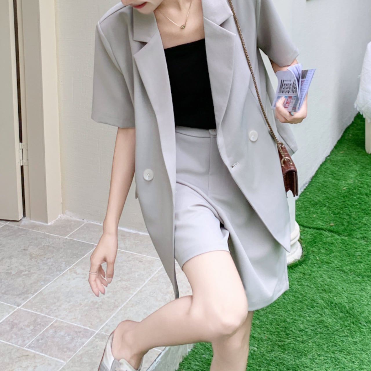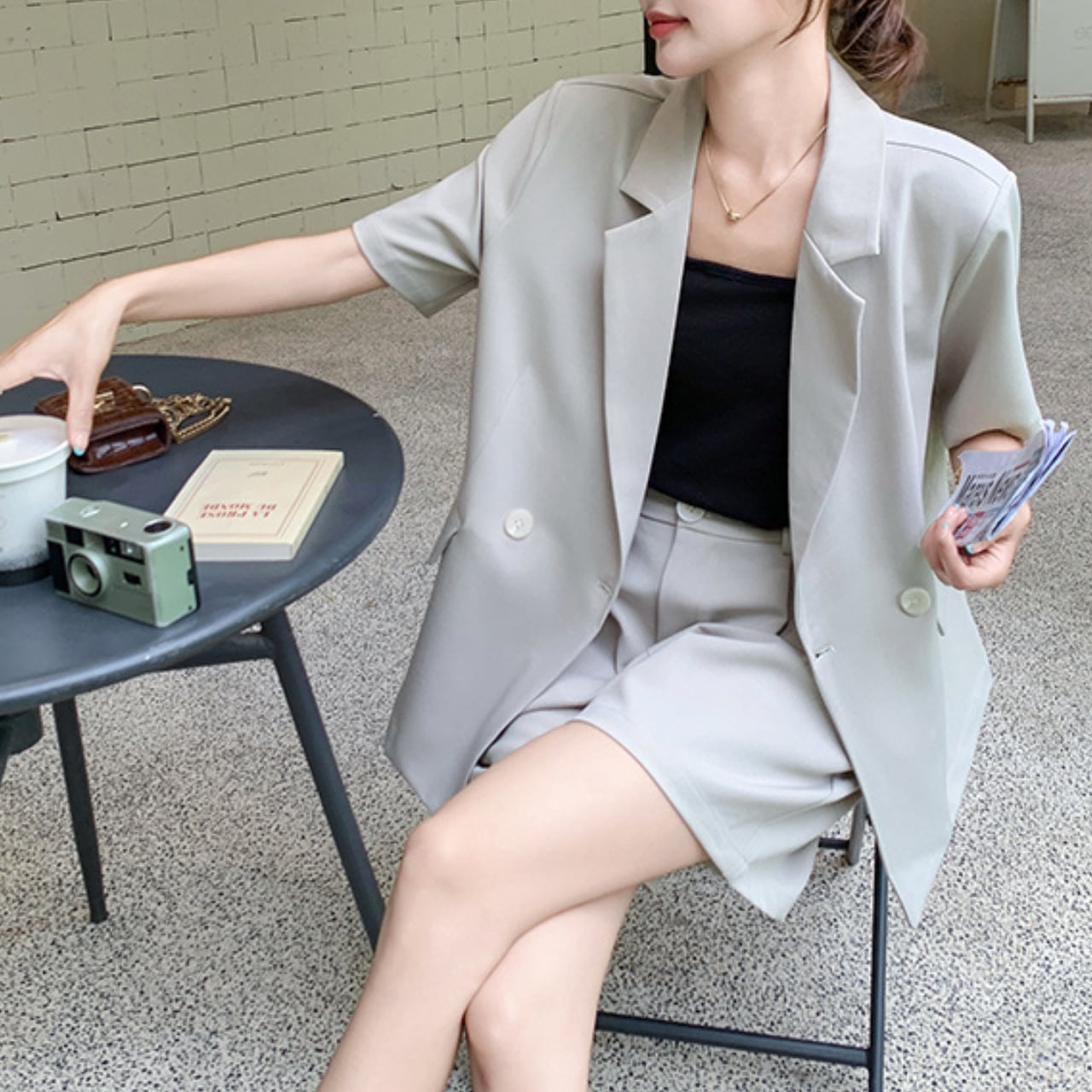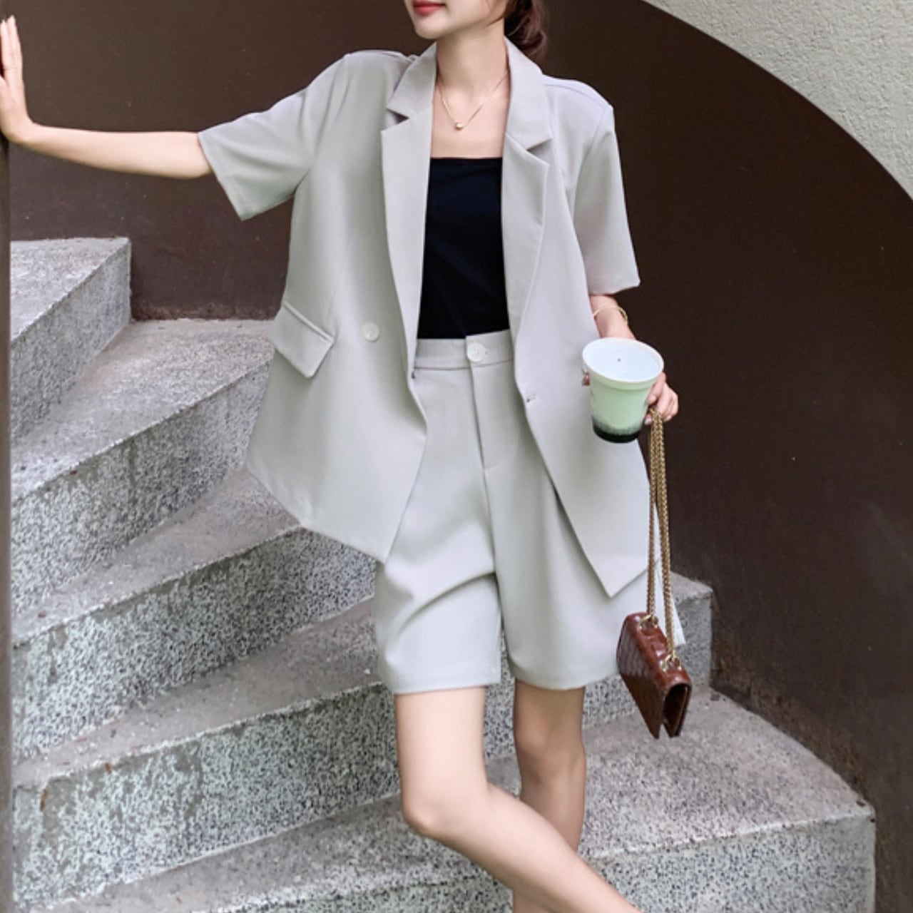 グレージャケット&ショートパンツセットです。 ジャケットはすっきりとしたシルエットで、テーラードの仕立てが大人の雰囲気を引き立てます。シンプルながらも存在感のあるダブルブレスト仕様です。 体にほど良くフィットする美しいシルエットで、着丈のバランスが考え抜かれたモダンな印象です。 パンツはウエスト周りはすっきりとしたシルエットで、腰回りをきれいに見せます。 両サイドにポケット付きで機能性も充実。 オフィスカジュアルはもちろん、休日のお出かけや友人とのランチにも活躍すること間違いなし。インナーにTシャツやキャミソールを合わせて、自由自在に多彩なコーディネートを楽しめます。 ■カラー グレー ■サイズ トップス XS 着丈:64cm 肩幅:39cm 胸囲:94cm 袖丈:23cm S 着丈:65cm 肩幅:40cm 胸囲:98cm 袖丈:24cm M 着丈:66cm 肩幅:41cm 胸囲:102cm 袖丈:25cm L 着丈:67cm 肩幅:42cm 胸囲:106cm袖丈:26cm XL 着丈:68cm 肩幅:43cm 胸囲:110cm袖丈:27cm 2XL 着丈:69cm 肩幅:44cm 胸囲:114cm袖丈:28cm パンツ XS 着丈:37cm ウエスト:60cm S 着丈:38cm ウエスト:64cm M 着丈:39cm ウエスト:68cm L 着丈:40cm ウエスト:72cm XL 着丈:41cm ウエスト:76cm 2XL 着丈:42cm ウエスト:80cm ※採寸方法により1~3cmの誤差がある場合がございます。 ■モデル 身長: 165cm 体重: 46kg Mサイズ着用 ◼️素材 ポリエステル98%、ポリウレタン2% ■商品番号 S1009 ・・━━・・━━・・━━・・━━・・━━・・━━・・ 【お届けについて】 当ショップの商品は海外より取り寄せ・発送となりますので、ご入金から3~4週間前後で発送いたします。 【お支払い方法について】 ・クレジットカード決済(VISA/Master/JCB/AMERICAN EXPRESS) ・キャリア決済(docomo/au/Softbank/Y!mobile) ・あと払い Pay ID決済 【注意事項】 ・商品の在庫切れや生産中止、生産遅延が発生した場合は、注文キャンセルとなる可能性がありますので、予めご了承ください。 ・こちらは輸入品となりますので、日本製品とは検品基準が異なります。新品未使用品でもごくわずかな汚れや傷がある場合がございます。 ・イメージ違いやサイズ・カラー相違による返品・交換はお断りします。 ・お手持ちのスマートフォンやパソコンの液晶環境によって、商品のお色味が若干異なる場合があります。 ・発送時期によりデザイン・素材・細部が変更される場合があります。 ご購入前にこちらをお読みください →https://solemy.base.shop/blog/2024/11/20/121101 ・・━━・・━━・・━━・・━━・・━━・・━━・・