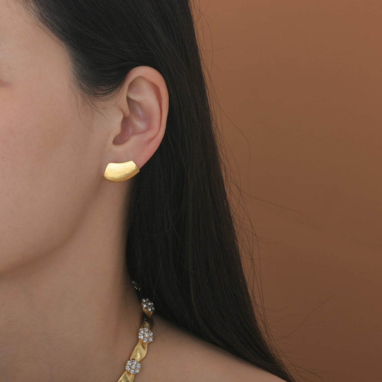 滑らかな曲線を描く半月状のデザインは、どの角度から見ても美しいシルエットを演出。耳たぶに沿うように設計された絶妙な弧は、まるで耳元に寄り添うように自然な存在感を放ちます。