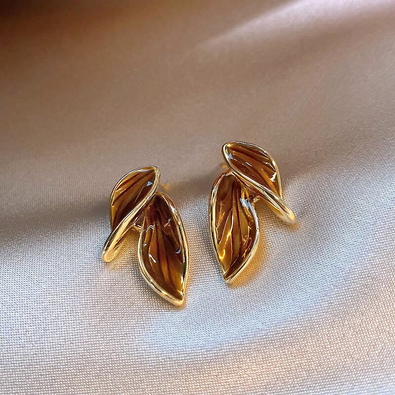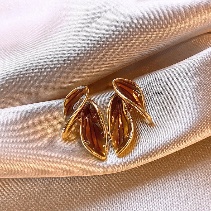 コーヒーの葉をモチーフにした形状のメイラードコーヒーリーフピアス。