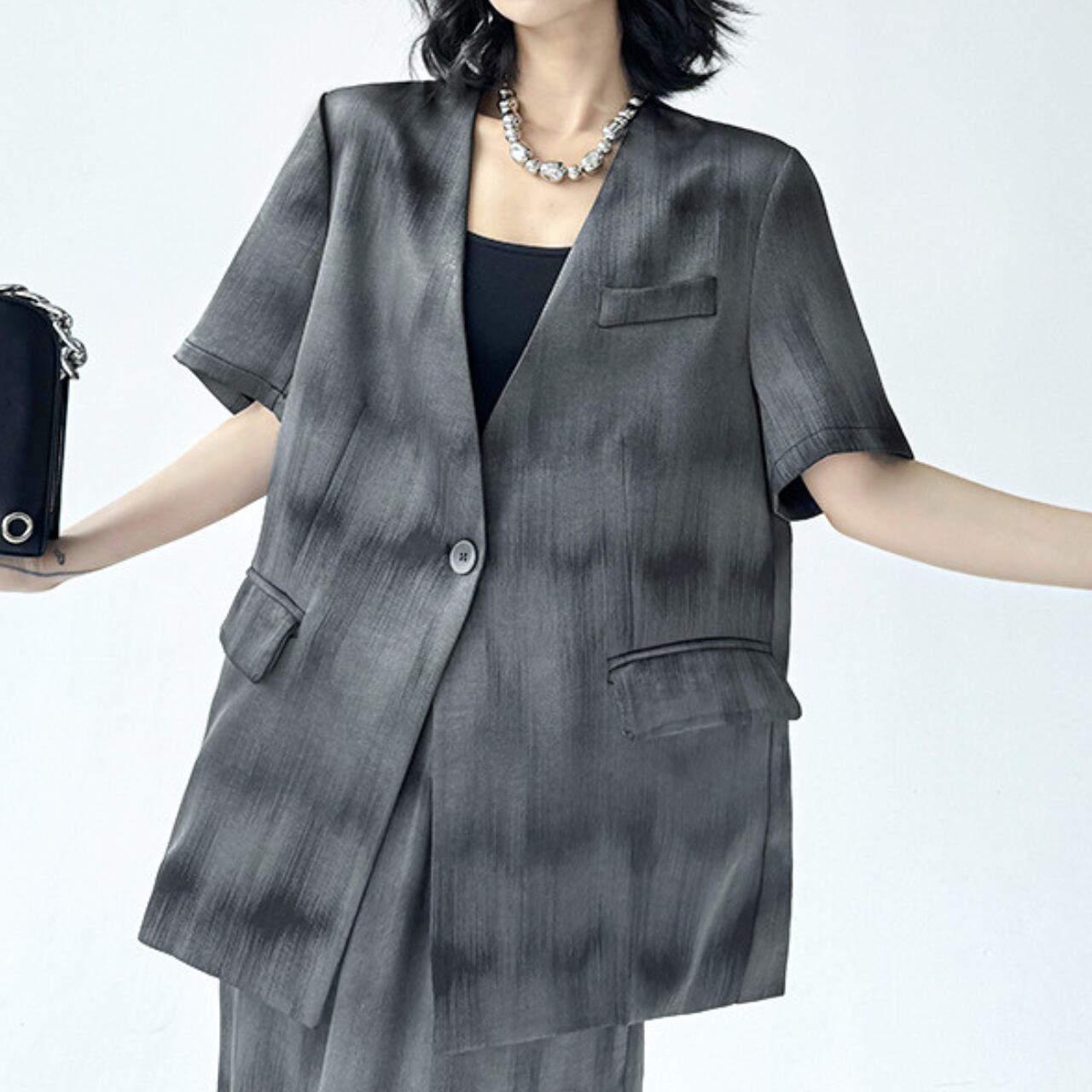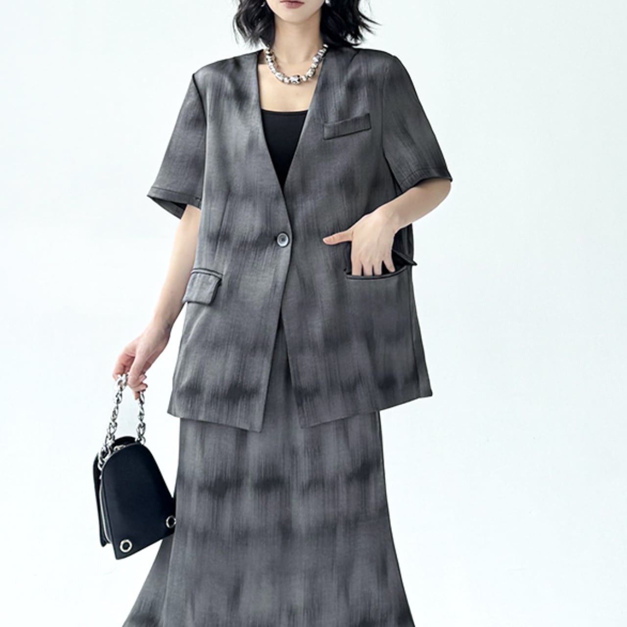 絞り染めの美しい模様が目を引くデザインジャケット。