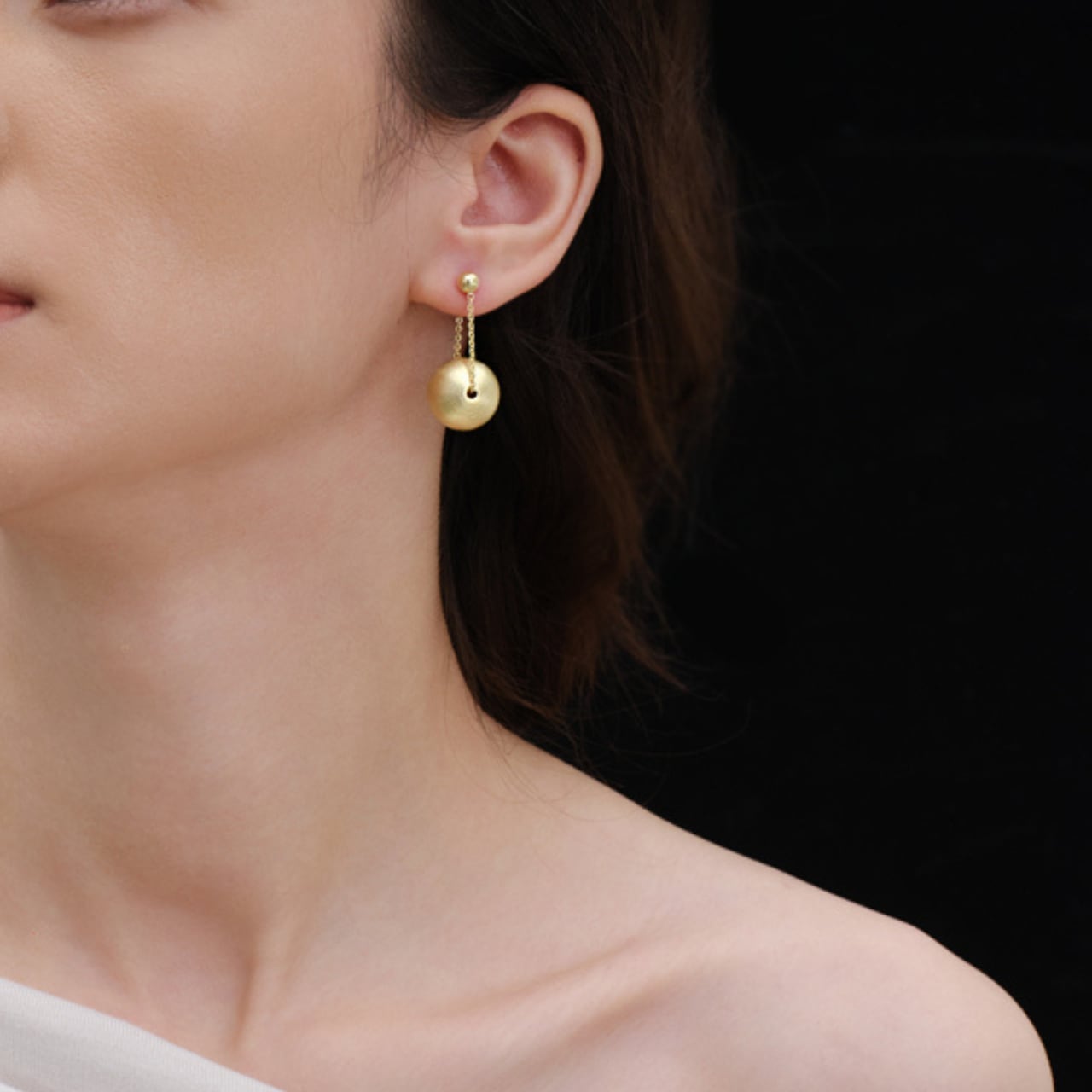 揺れ動くチェーンの先に煌めくミラーボールが織りなすチェーンボールピアスです。