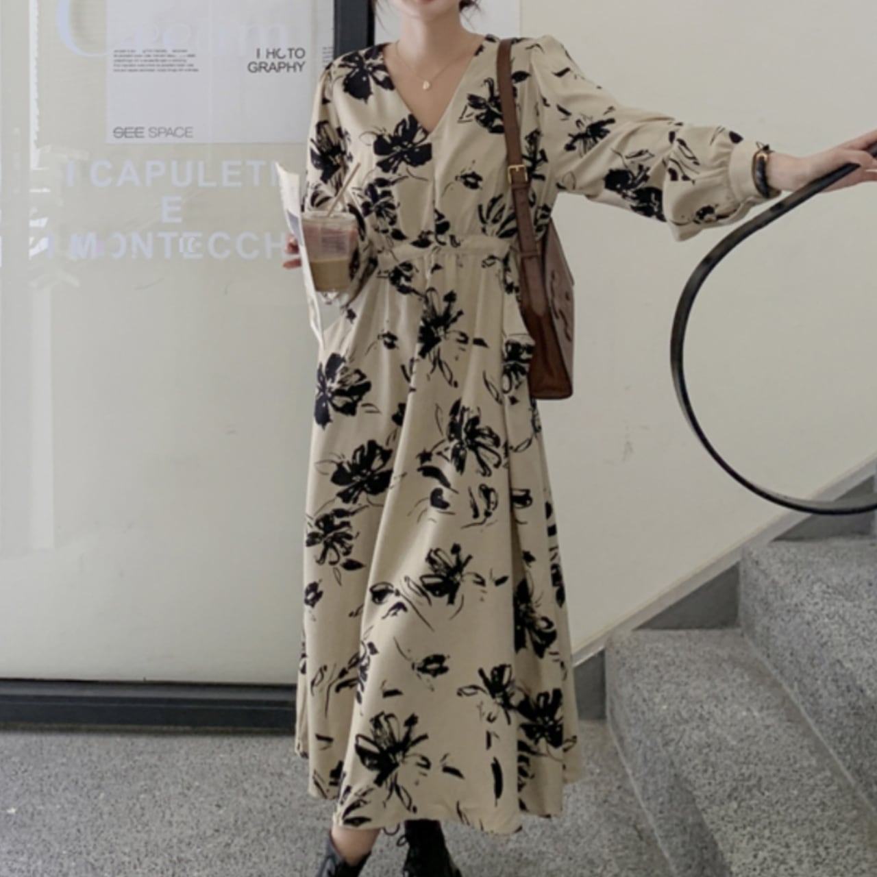 Floral long sleeve dress S1046